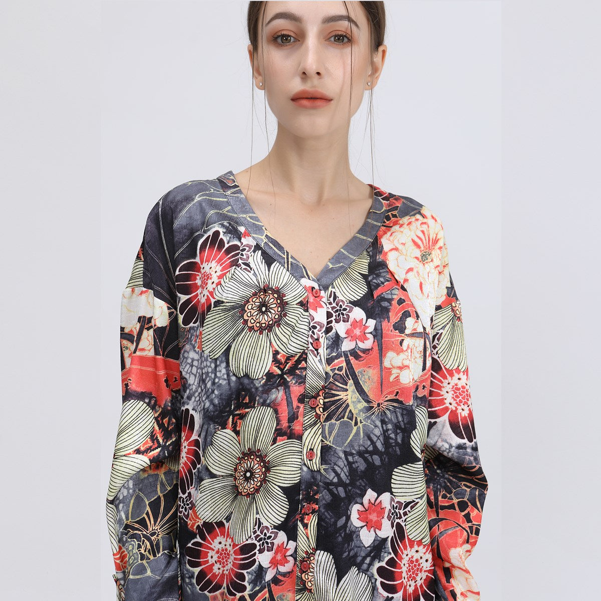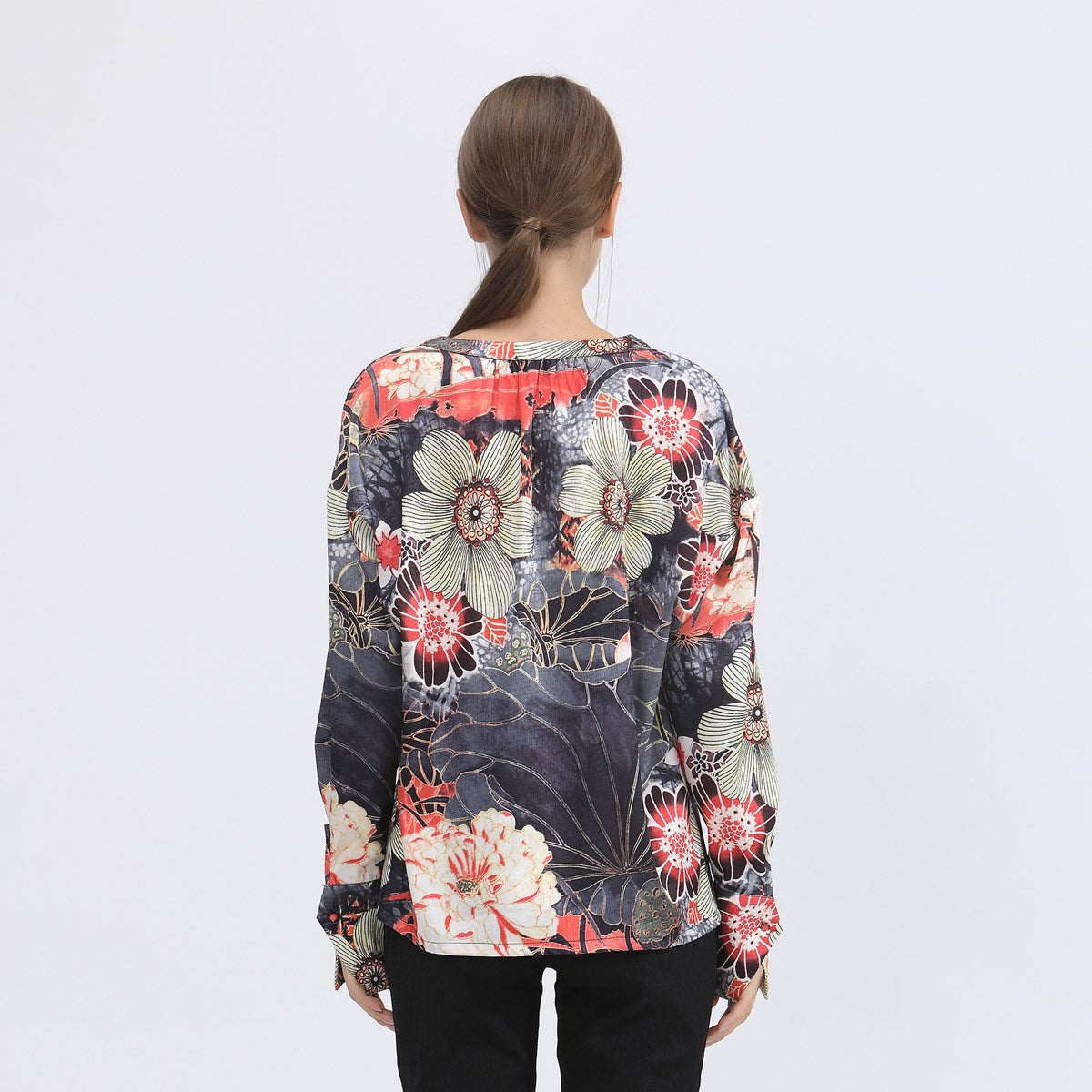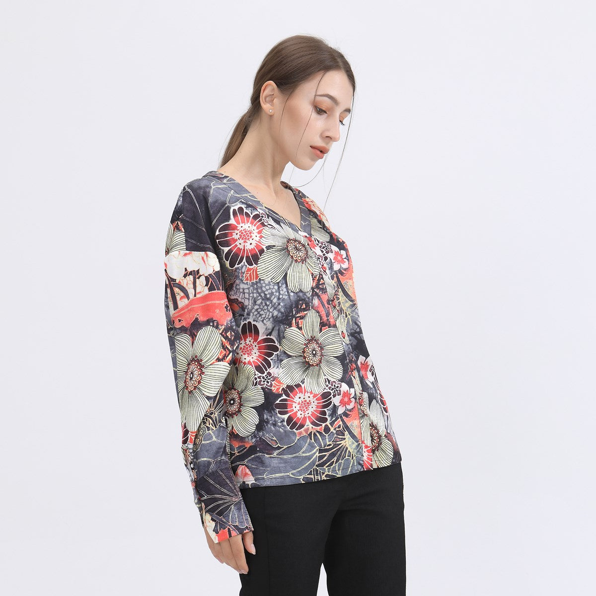 Une pièce de caractère avec une coupe confortable ,cette blouse présente un motif floral très graphique et contrasté. Décolleté V, manche longues légèrement chauve-souris. Un haut qui ravive avec élégance votre garde-robe et s’associe très bien avec un tailleur noir ou gris pour une tenue de bureau. A porter également avec un pantalon cigarette ou un jean pour un look plus décontracté.