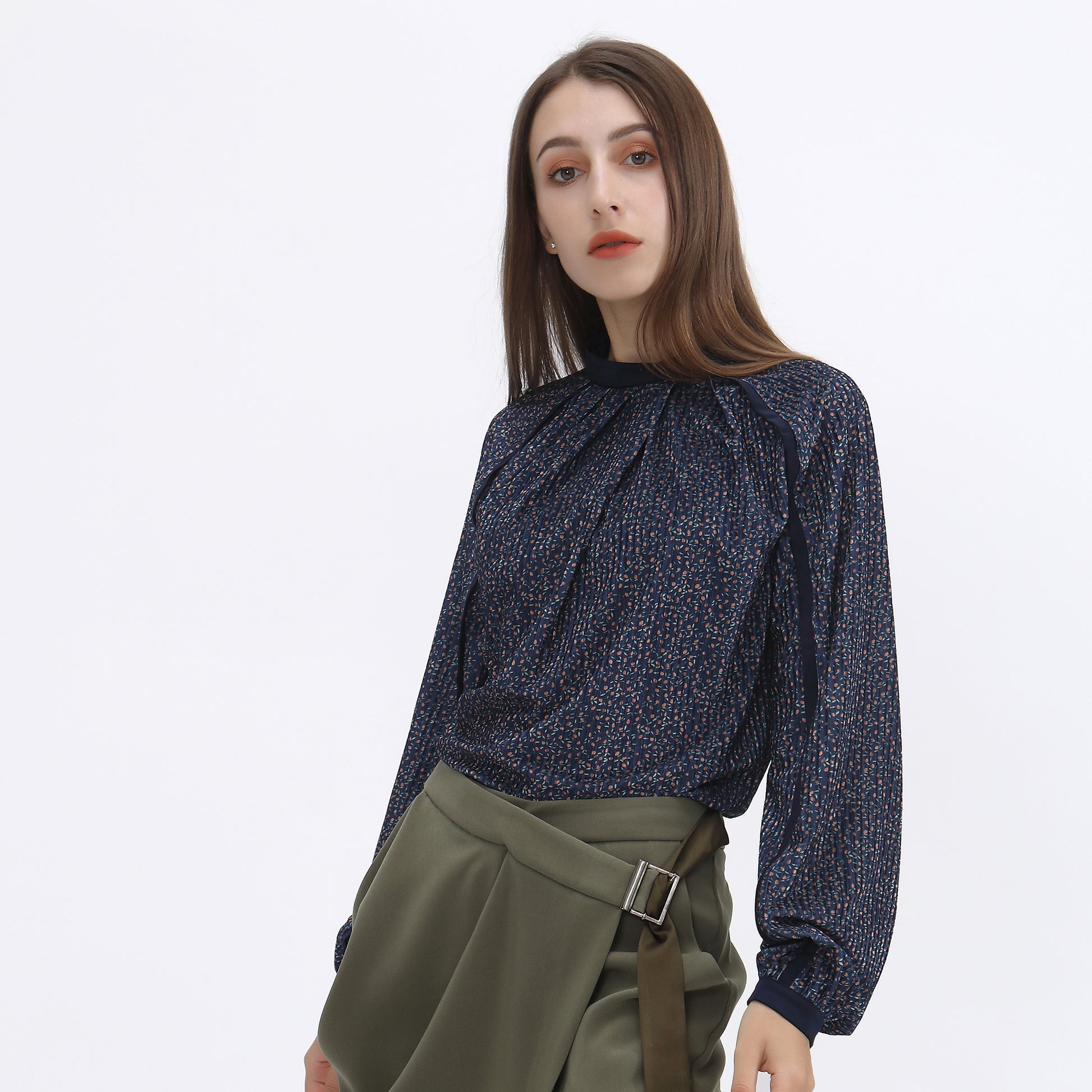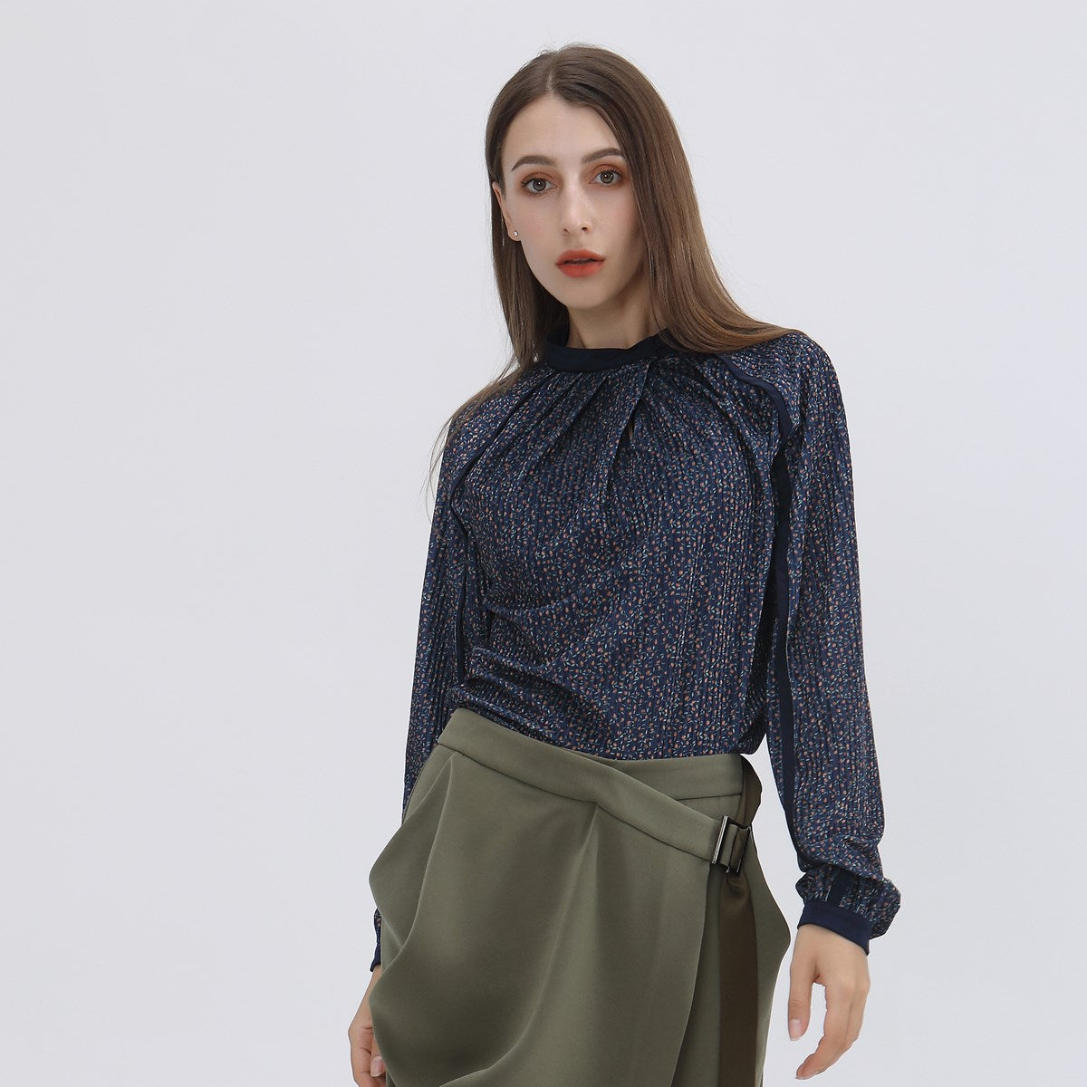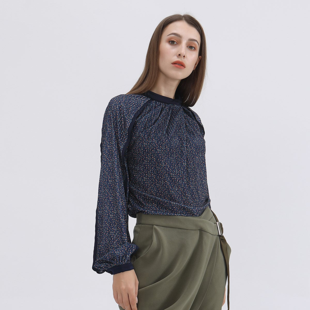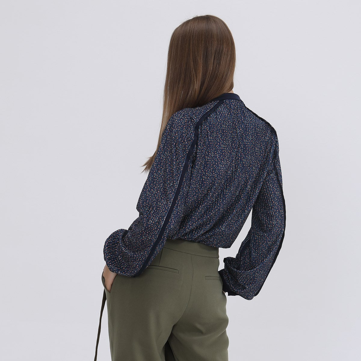 Une pièce confortable et souple, cette blouse est une option élégante et facile soit pour le bureau soit pour une sortie informelle. Col plissé asymétrique fermant au côté, longue manches amples, ornées de biais satin mat au col et aux emmanchures. Coupée dans un velours imprime doux et stretch. A associer avec un pantalon de ville, une paire de jeans ou une jupe taille haute.