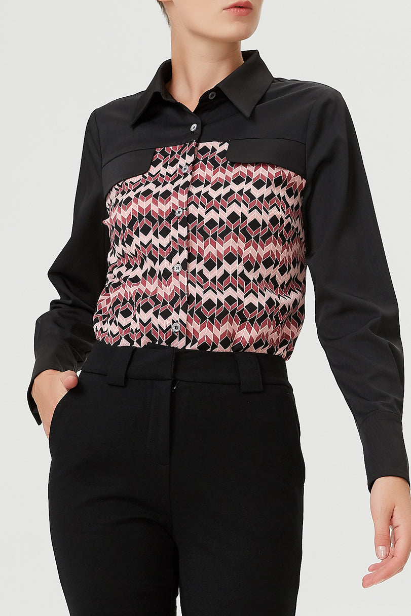 Dotée d'un imprimé à chevrons géométrique sur le devant, cette chemise ajoute raffinement et dynamisme à votre garde-robe. Découpe horizontale au buste relevée de rabats. Sa coupe droite offre le confort nécessaire pour une journée au bureau. Coupée dans une flanelle infroissable au touché doux et respirant. A porter aussi bien avec une jupe crayon, une jupe trapèze ou une paire de leggings.