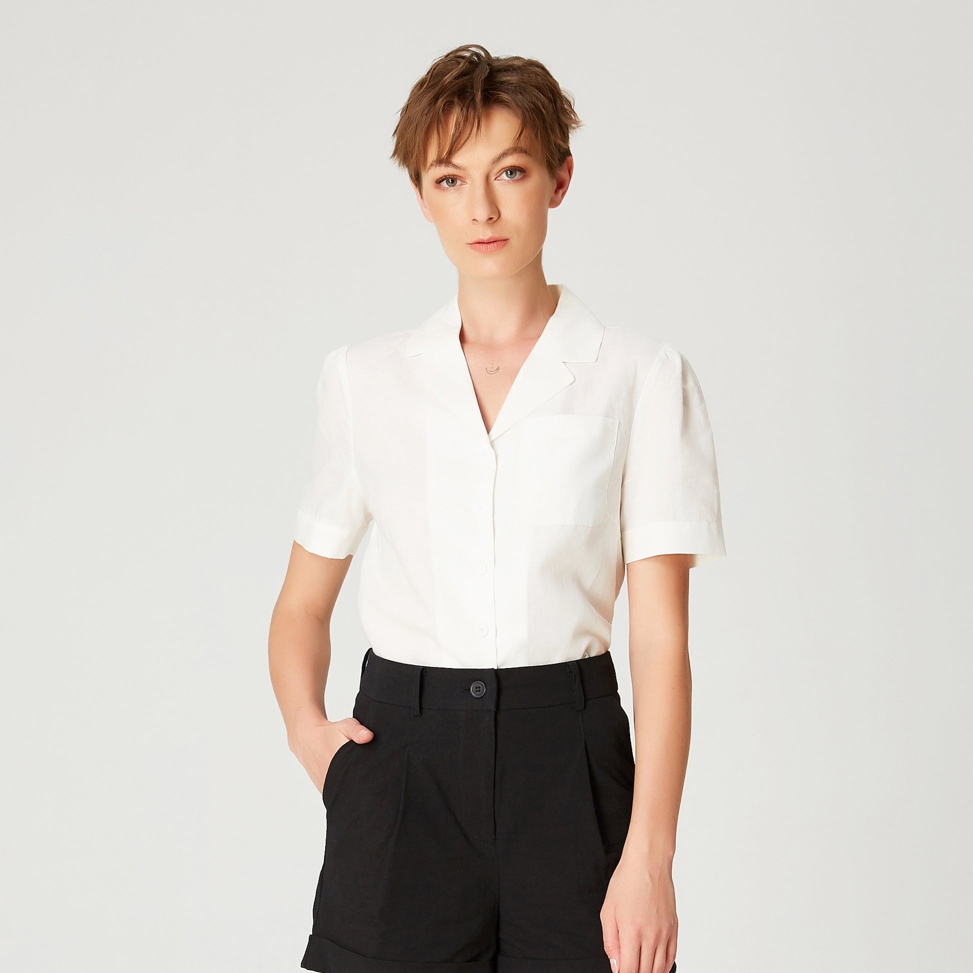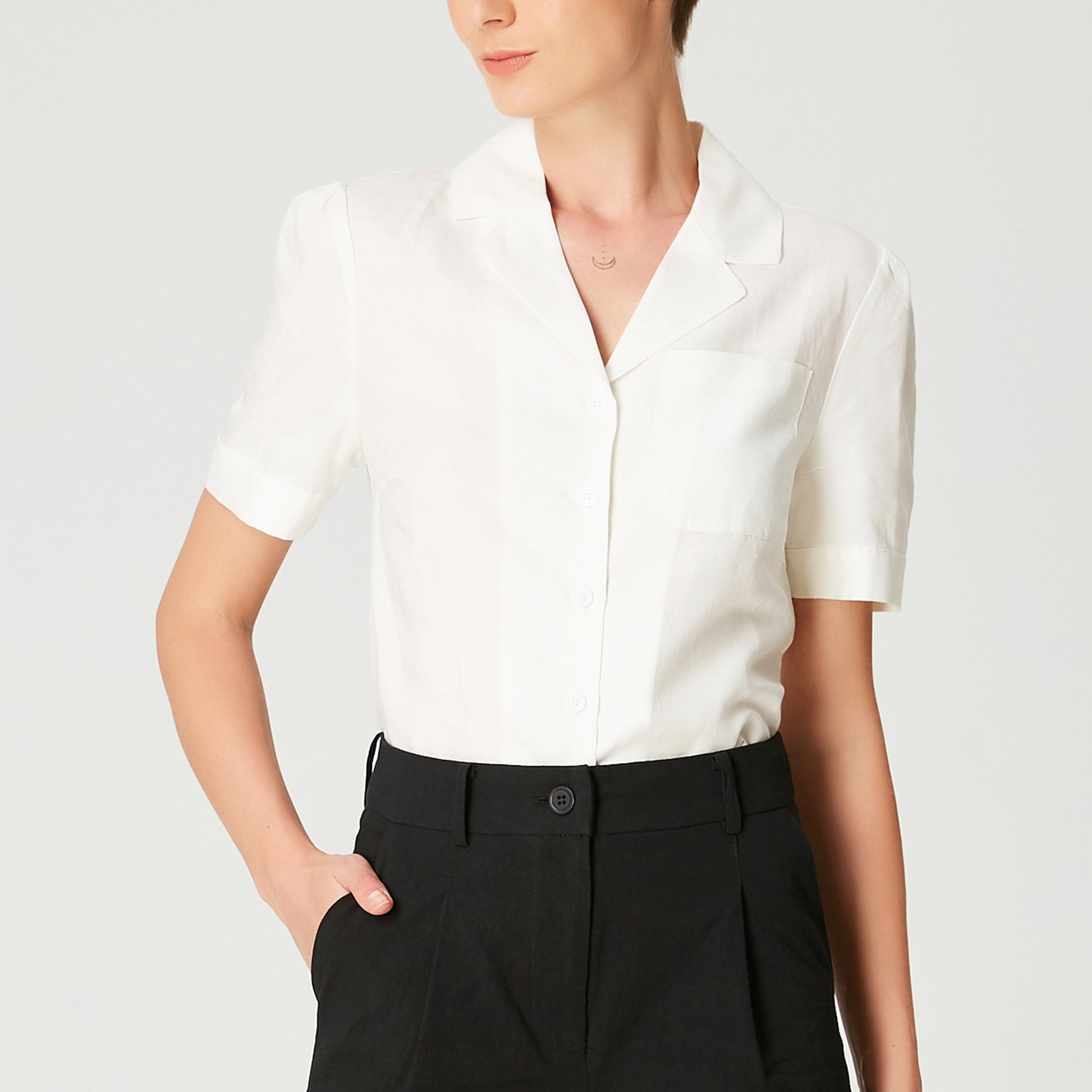 Une coupe simple et confortable, cette chemise est une pièce versatile à associer avec jupe et blazer pour le bureau ou à porter par-dessus un jean pour les jours décontractés. Un essentiel dans toute garde-robe.