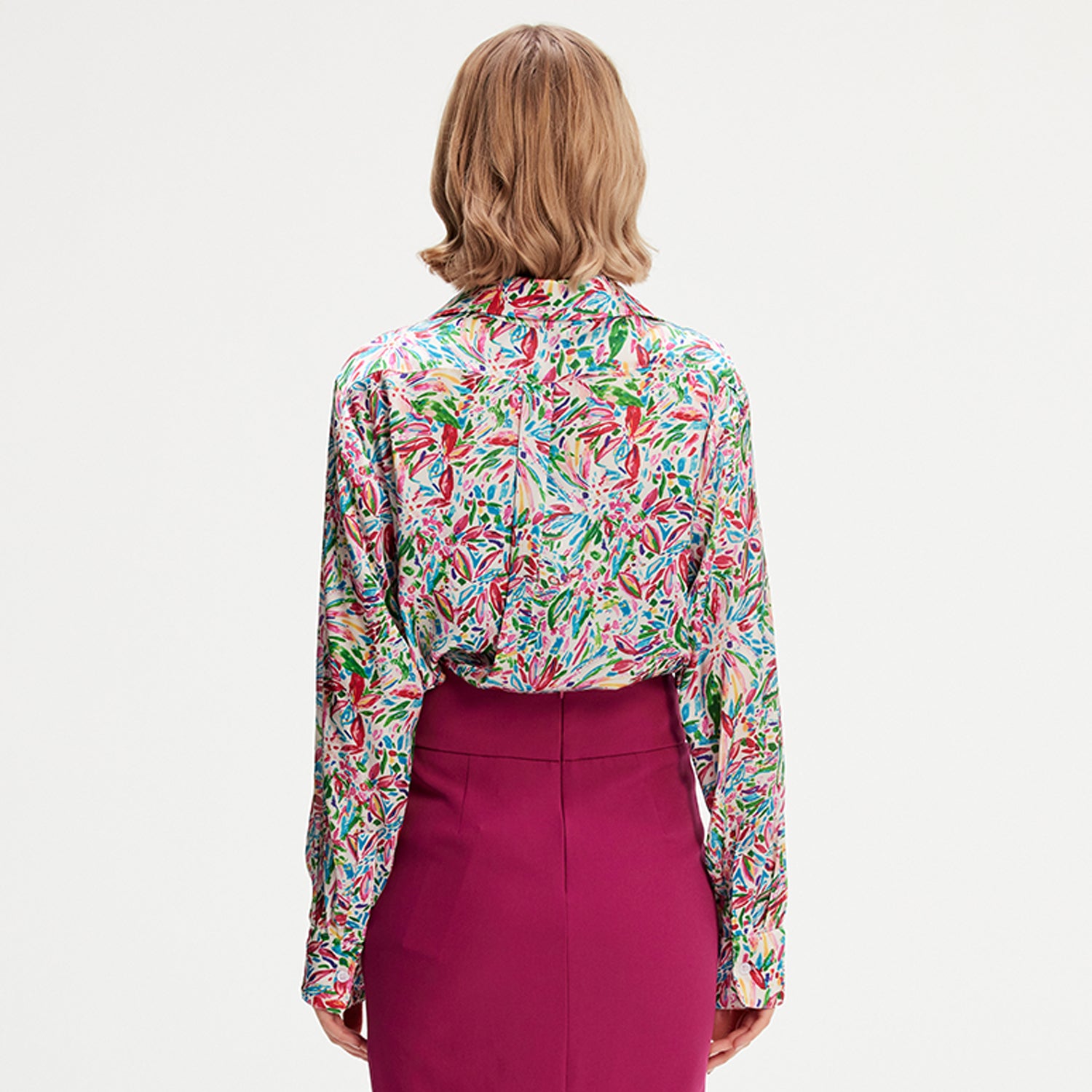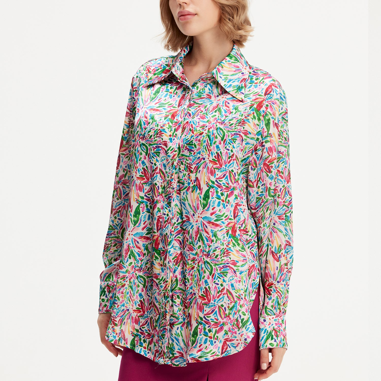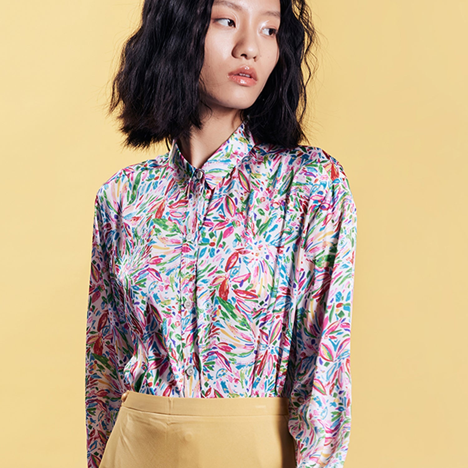 Une pièce simple et raffinée à l’imprimé estival coloré qui s’associe facilement avec tailleurs pour un look formel ou un jean pour une allure décontractée. Orné d’un large col de type italien pour une touche de caractère.