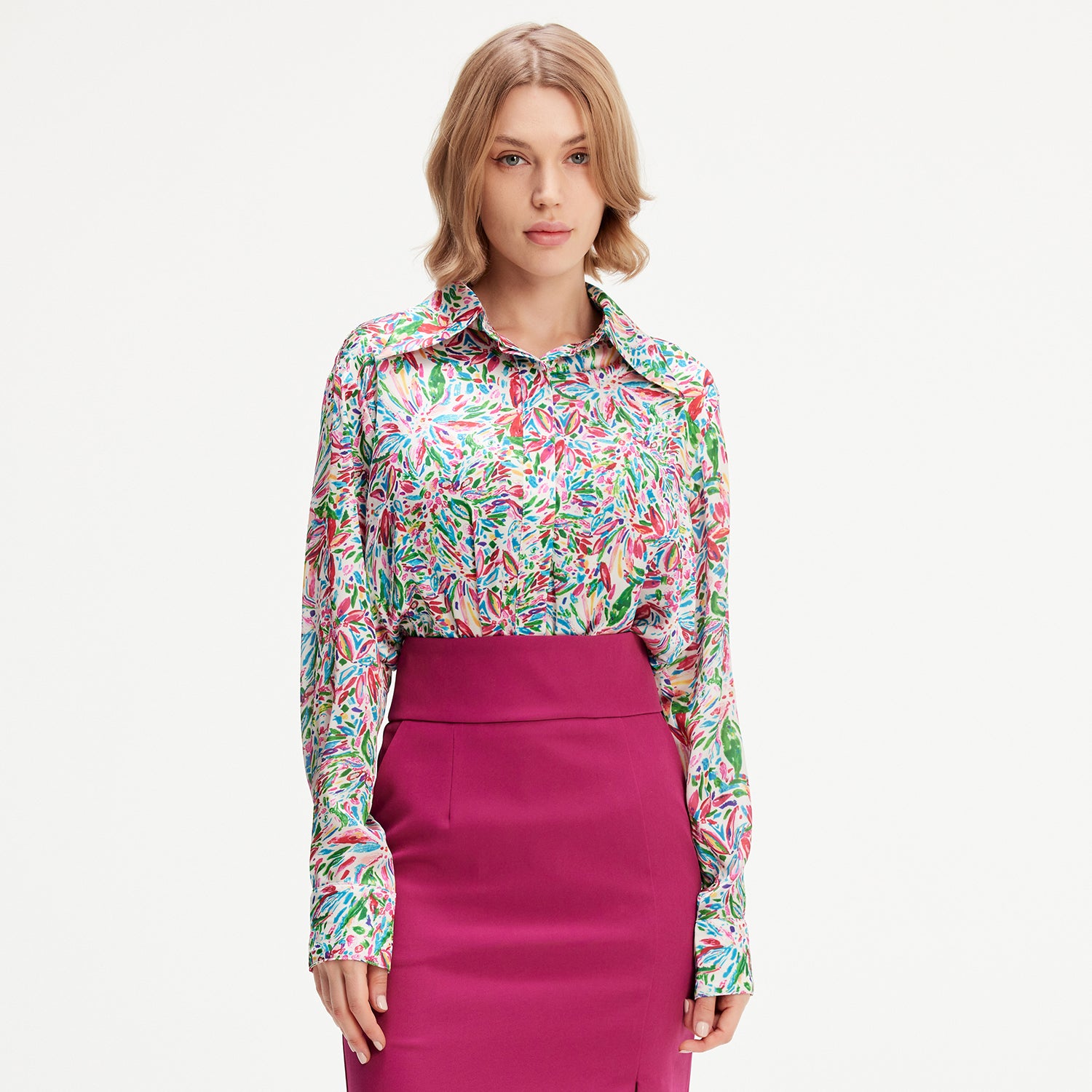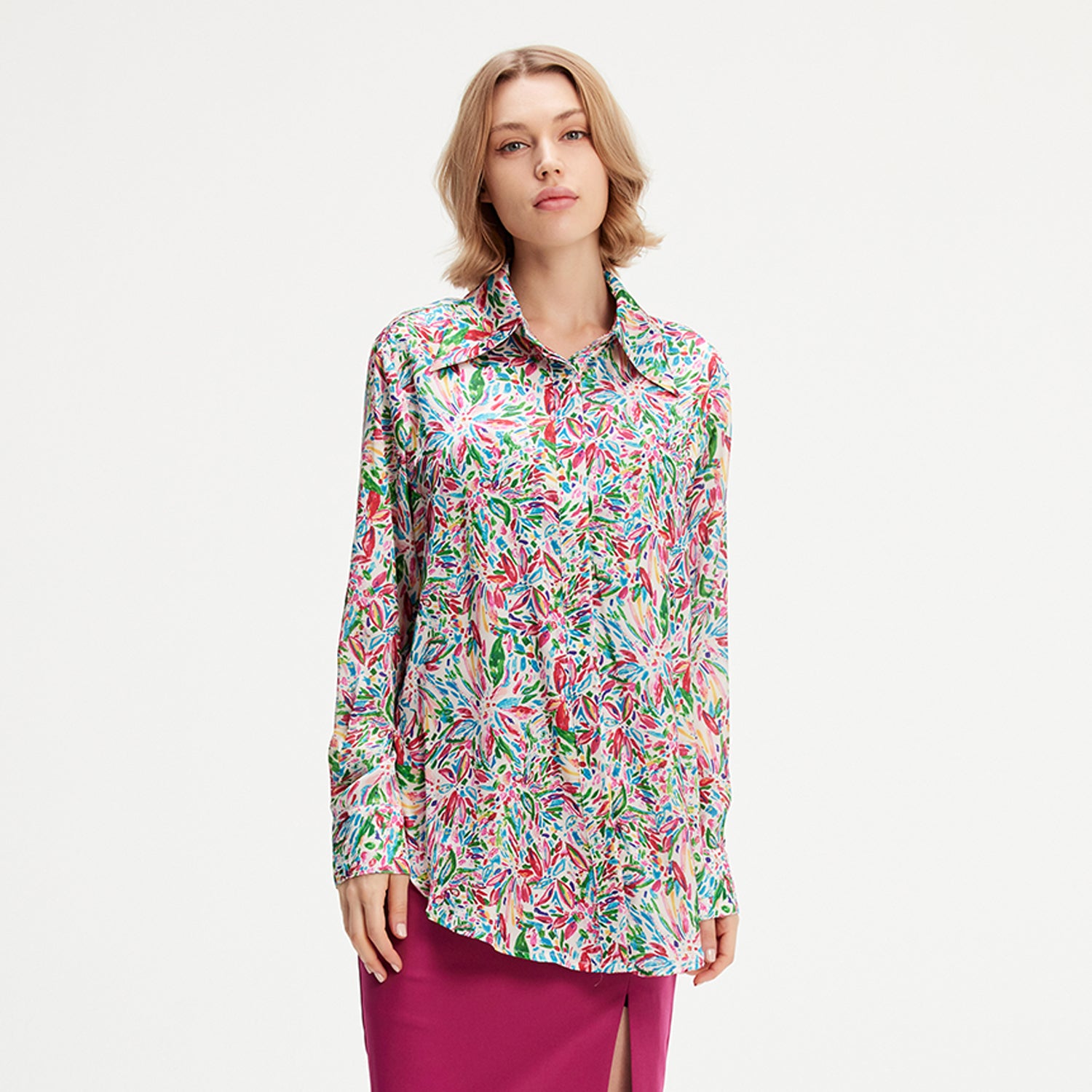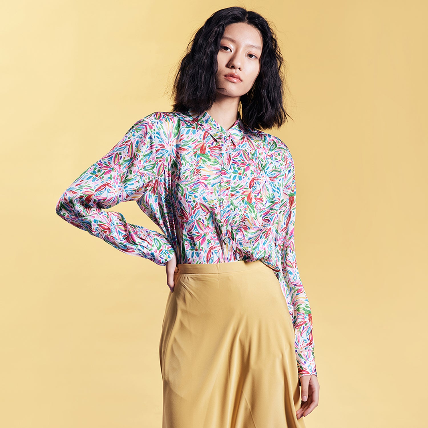 Une pièce simple et raffinée à l’imprimé estival coloré qui s’associe facilement avec tailleurs pour un look formel ou un jean pour une allure décontractée. Orné d’un large col de type italien pour une touche de caractère.
