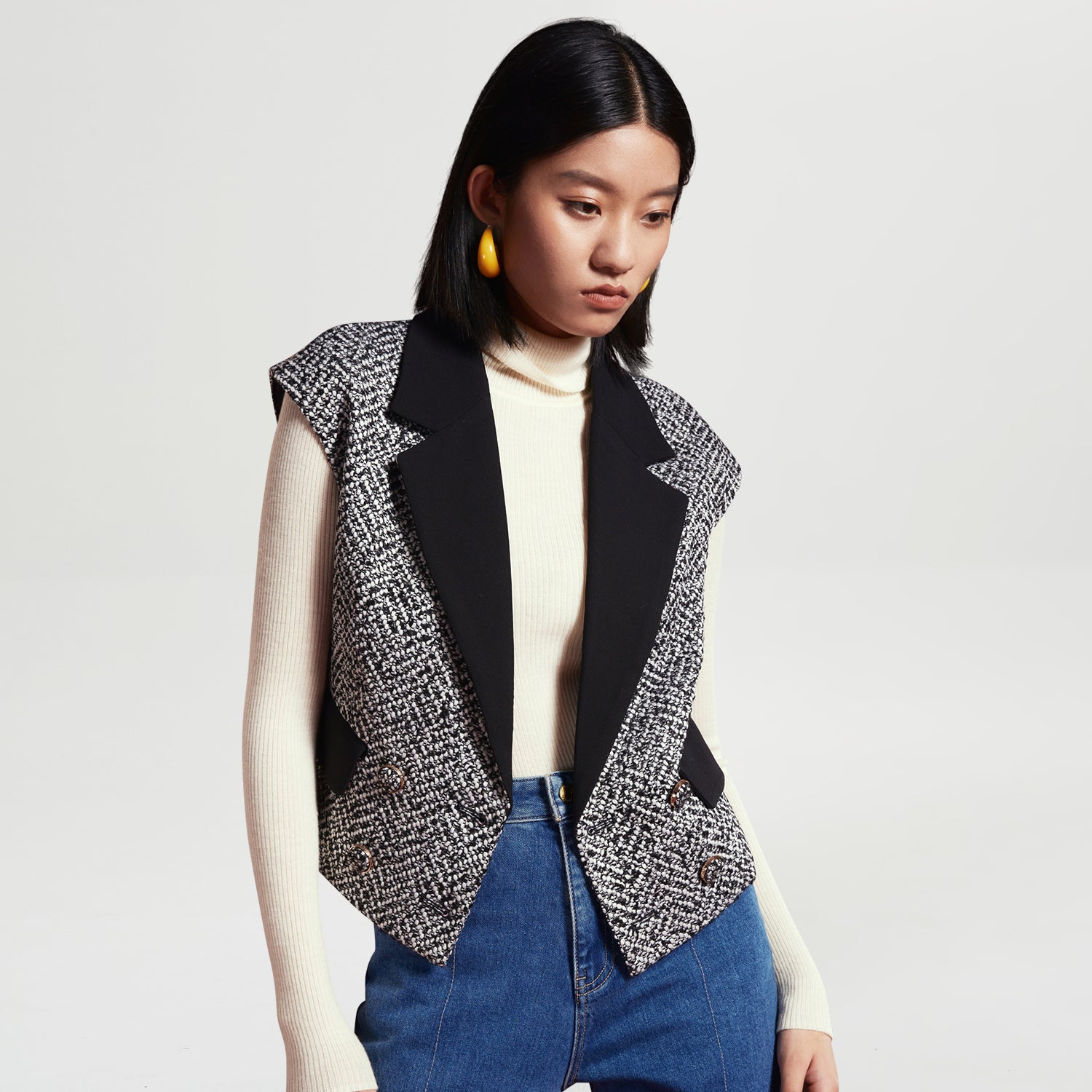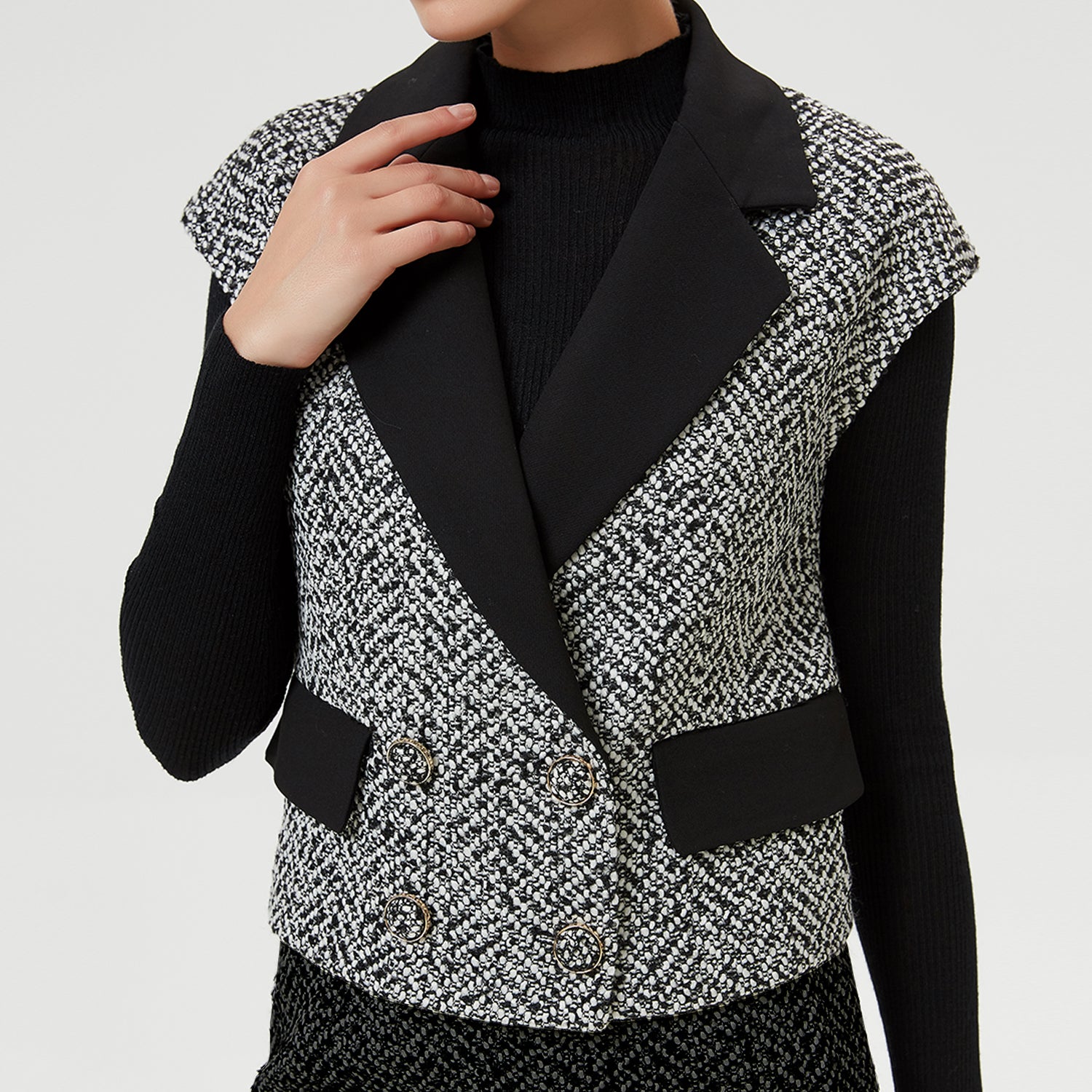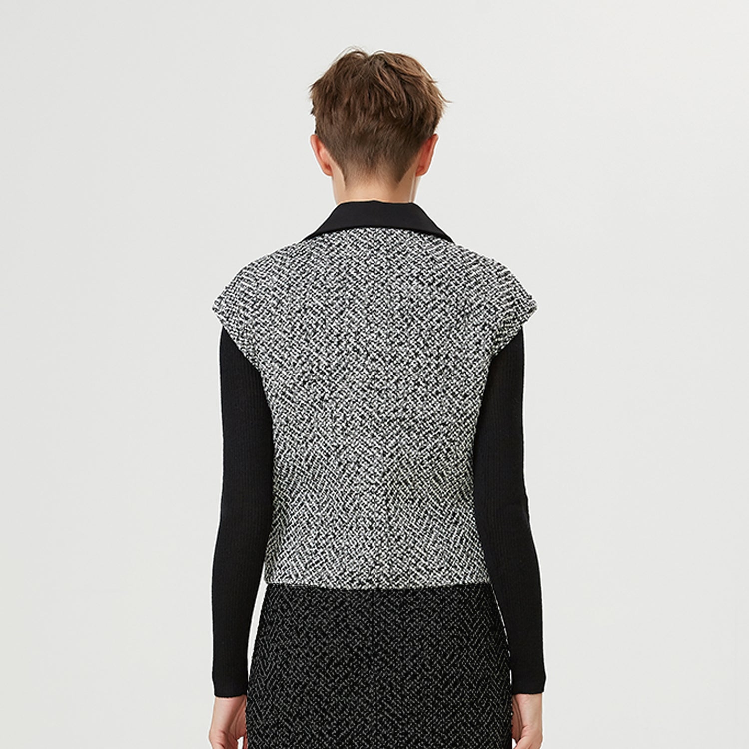 Gilet tweed à col contrasté