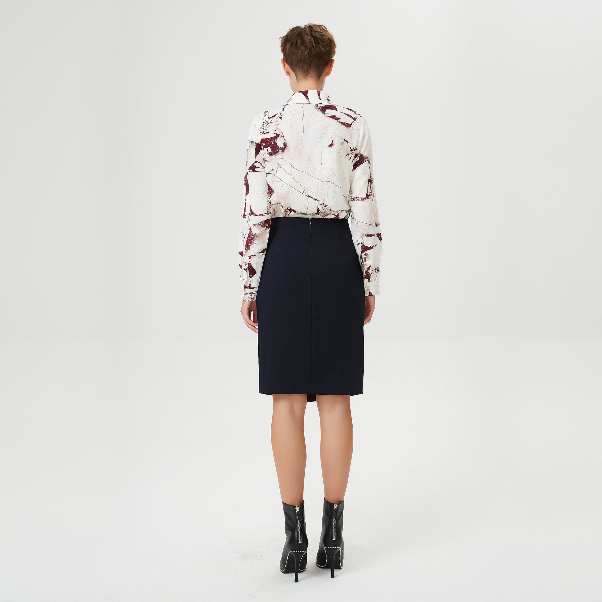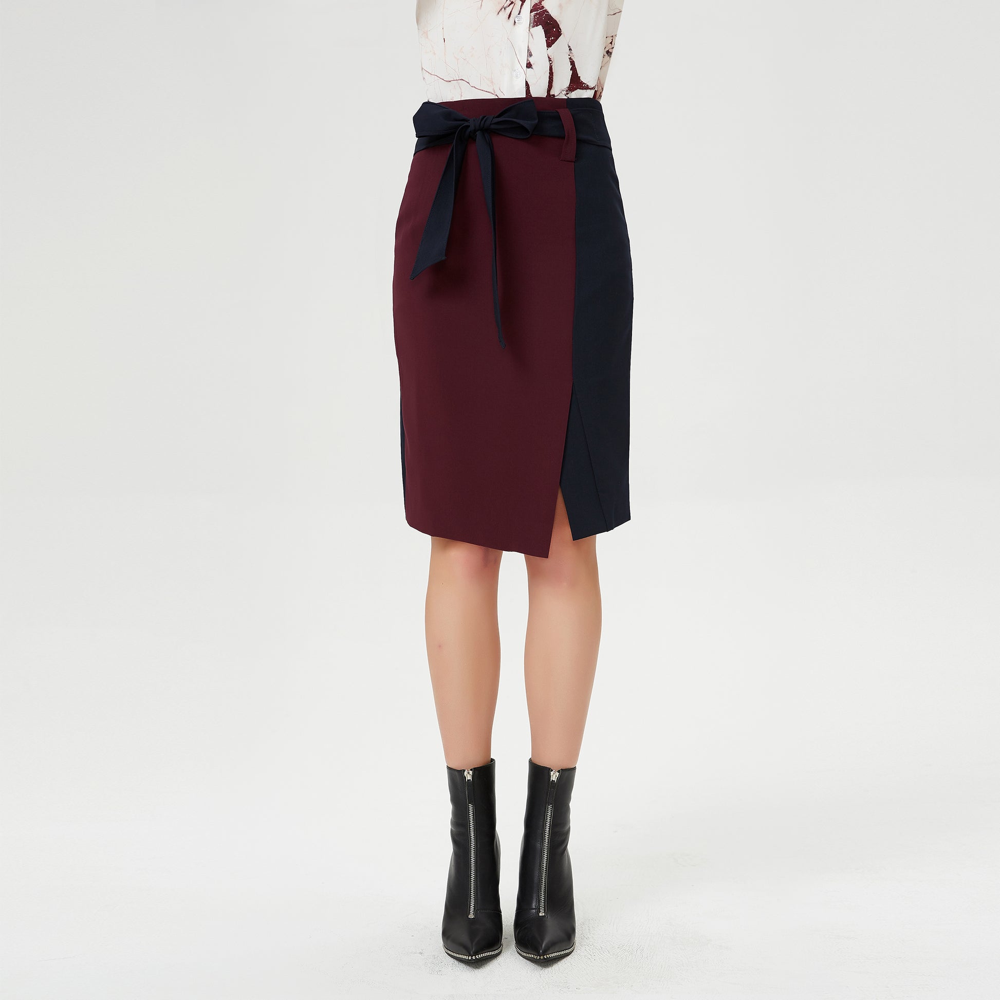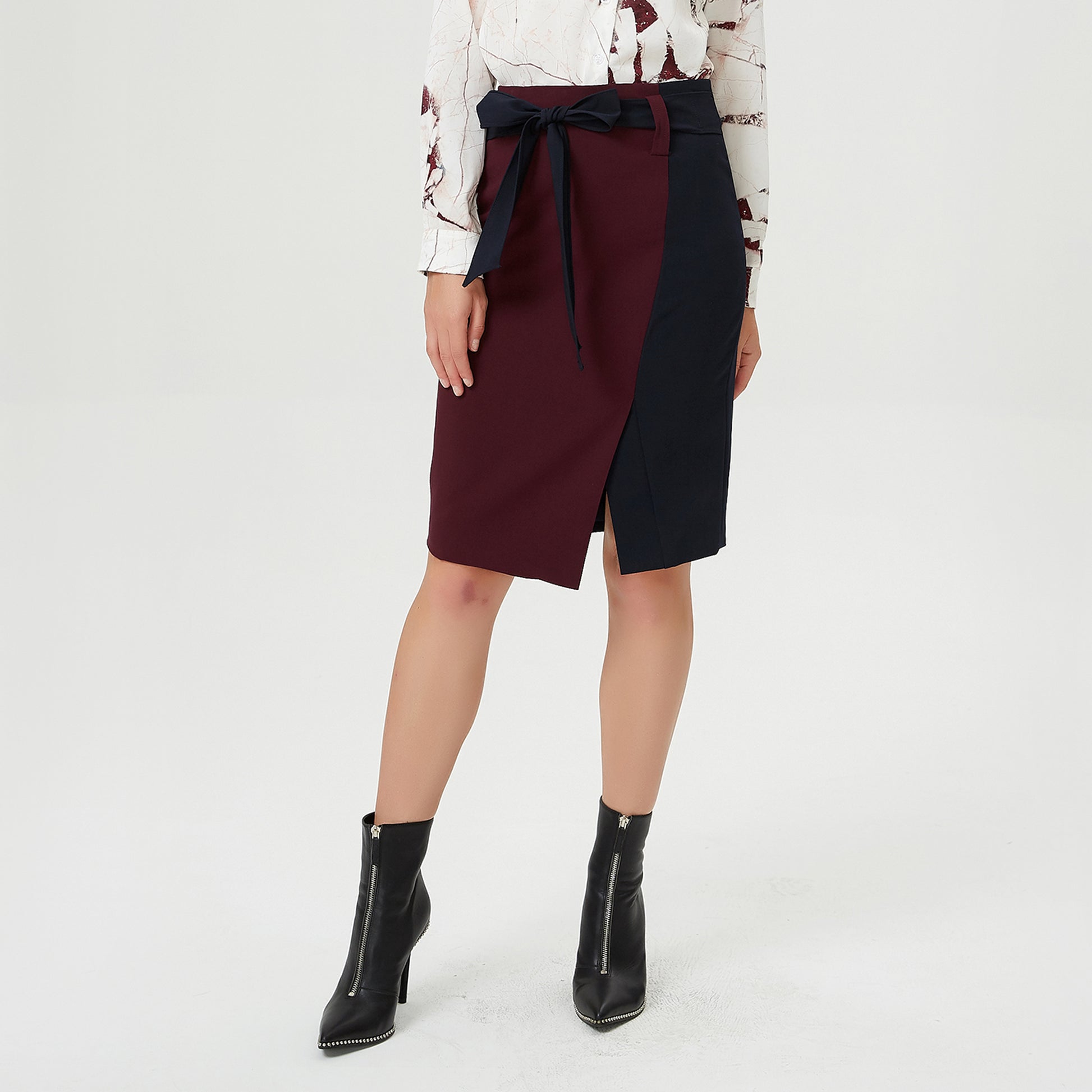 Cette jupe présente deux panneaux de couleurs différentes type portefeuille s’ouvrant sur une fente. Agrémentée d’une ceinture à nouer, elle est pièce qui attire l’attention et peut ainsi se porter avec un top très simple. Peut également s’associer à notre « Chemise droite à imprimé effet marbre » pour un look plus sophistiqué.