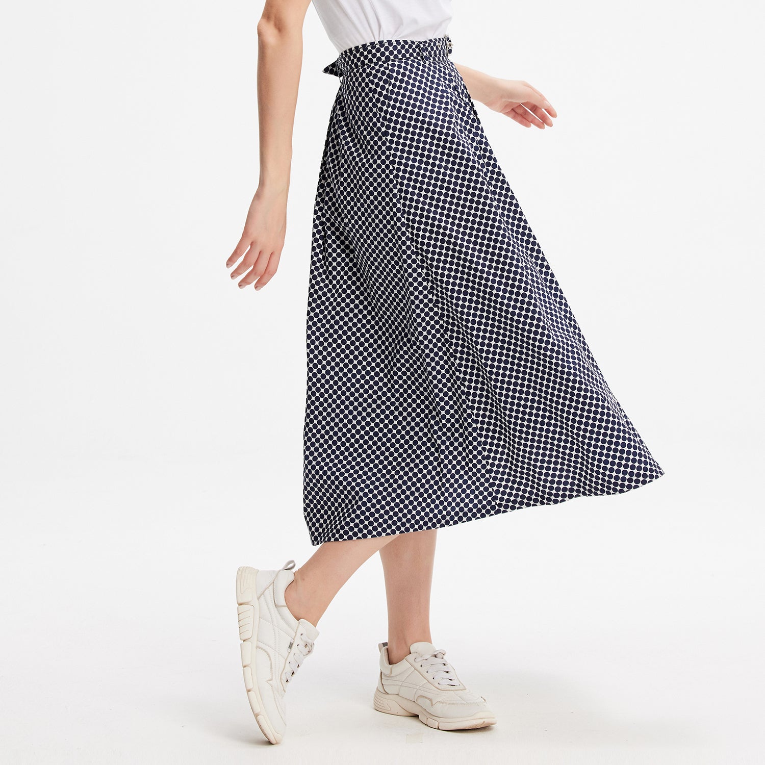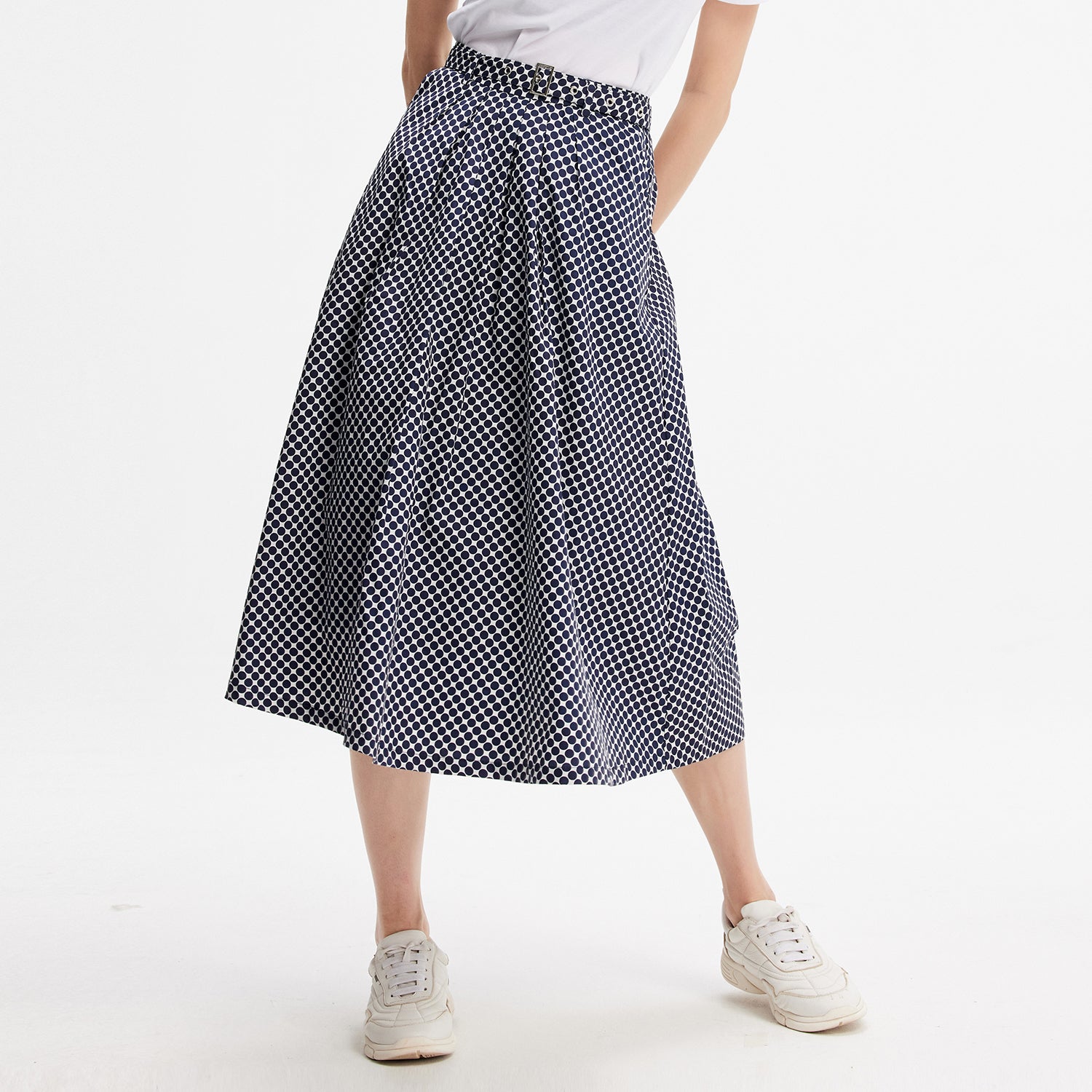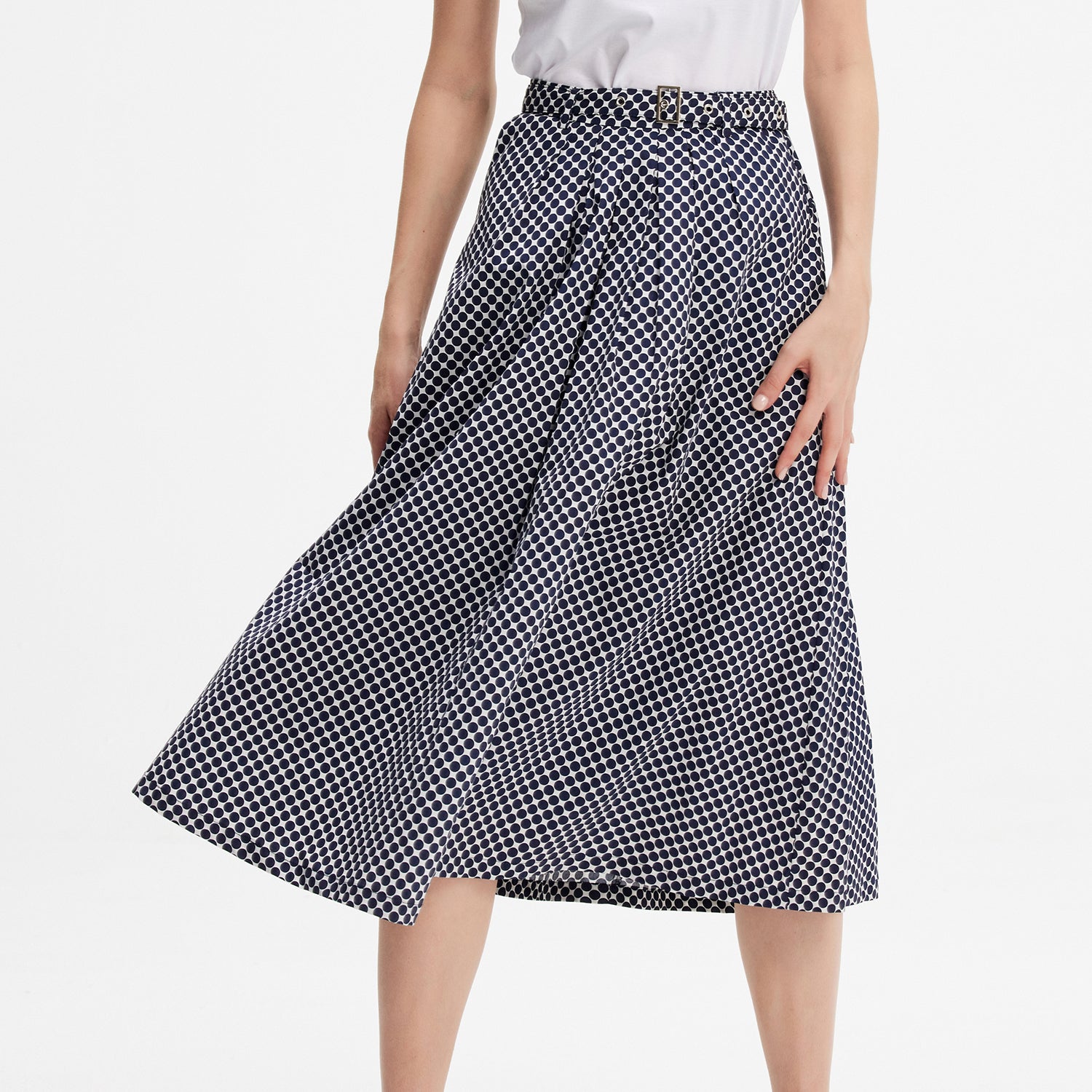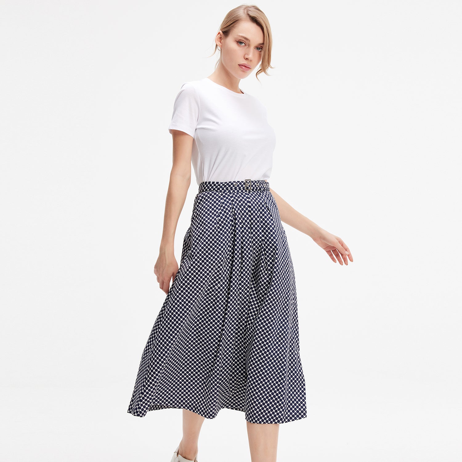 Une jupe évasée qui allie élégance et légèreté grâce à son imprimé graphique intemporel. Cintrée à la taille et agrémentée d'une boucle délicate, elle flatte la silhouette et s'adapte aussi bien aux looks décontractés qu'aux tenues plus habillées. Parfaite pour une allure chic et sans effort, cette jupe sera une pièce maîtresse de votre garde-robe estivale.
