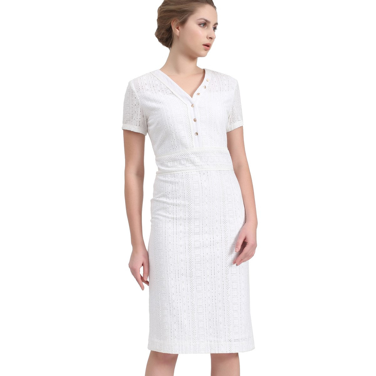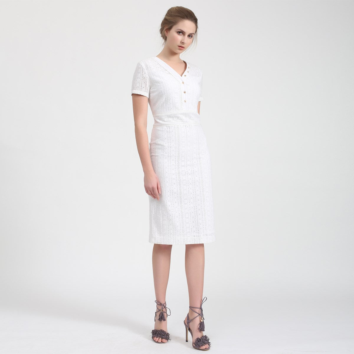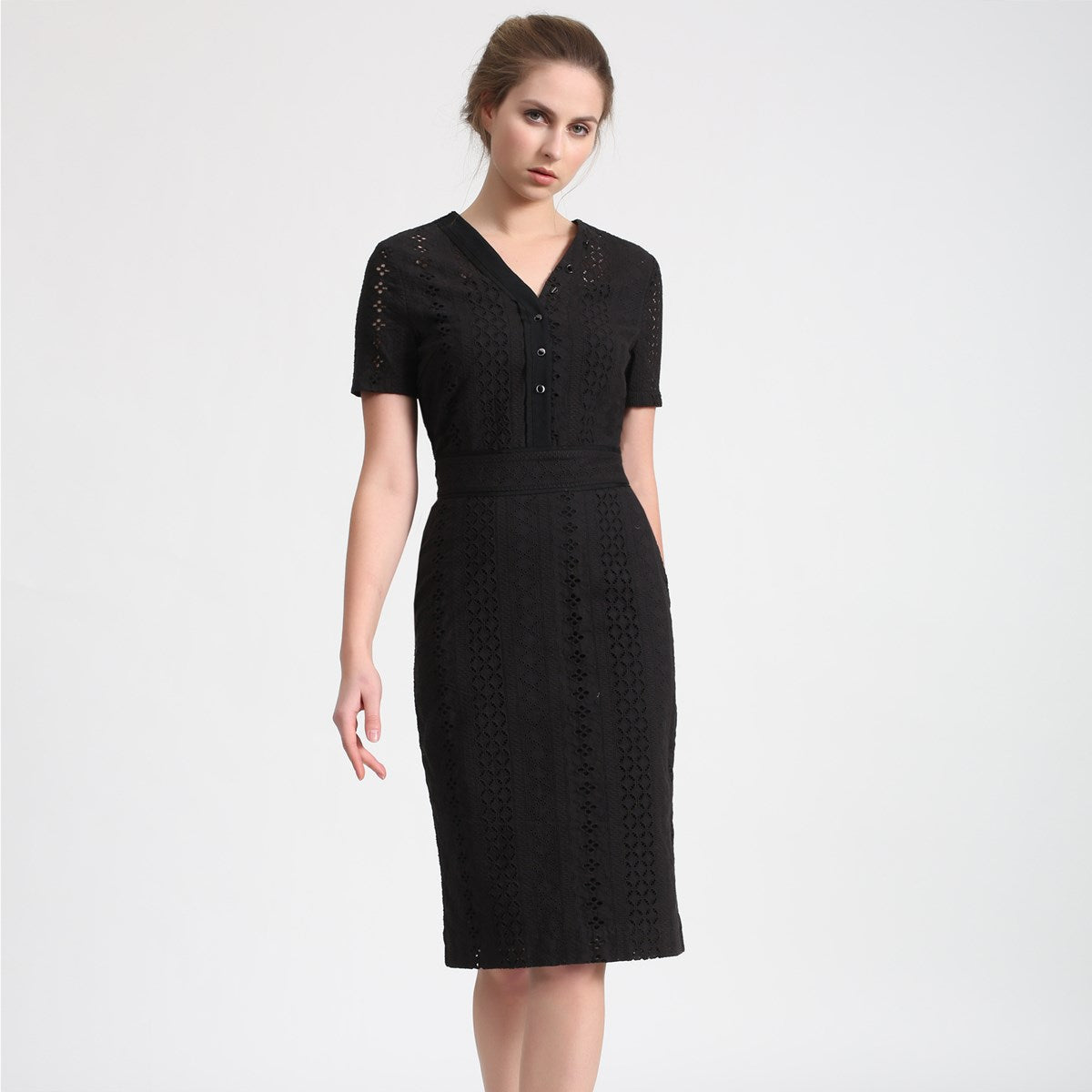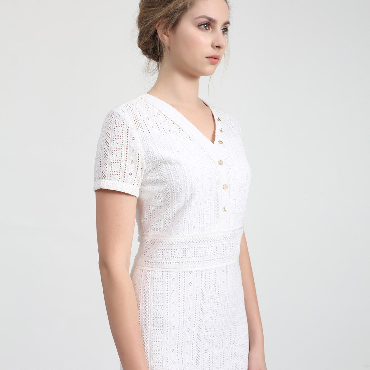 Une coupe flatteuse et ajustée qui reste une valeur sûre au fil des saisons : Manches courtes, taille cintrée, col V et plaquette ornée de boutons dorés. Une pièce intemporelle et élégante.