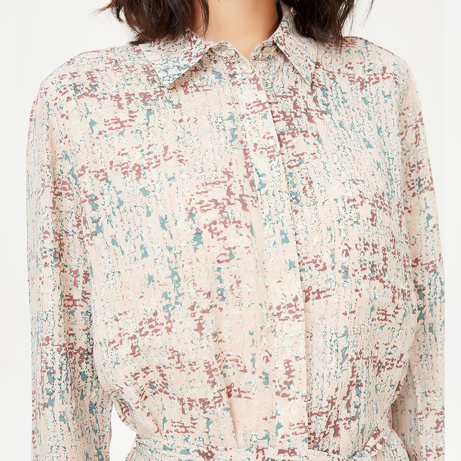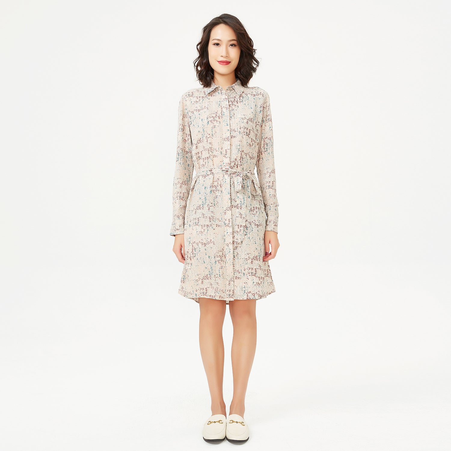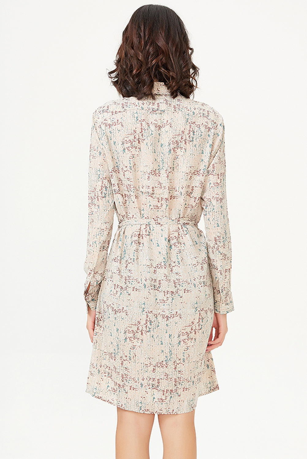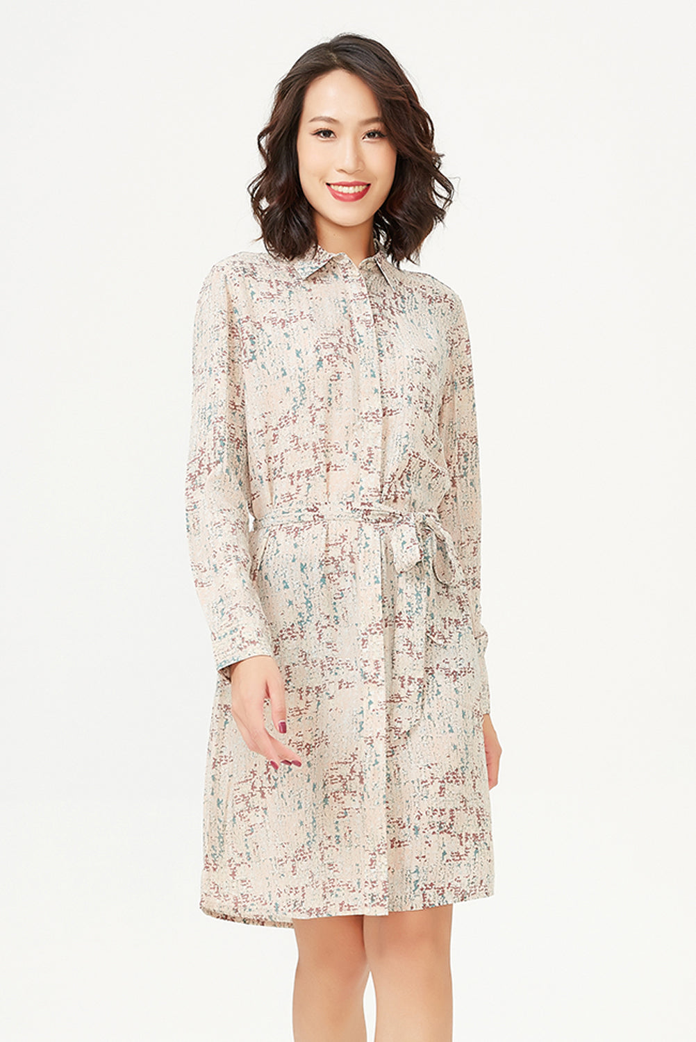 Une coupe simple qui met élégamment en valeur la silhouette avec son col tailleur, sa taille cintrée d’une ceinture et son imprimé ton-sur-ton subtil. A porter avec des sandales, des sneakers ou des escarpins. Une pièce intemporelle et passe partout.