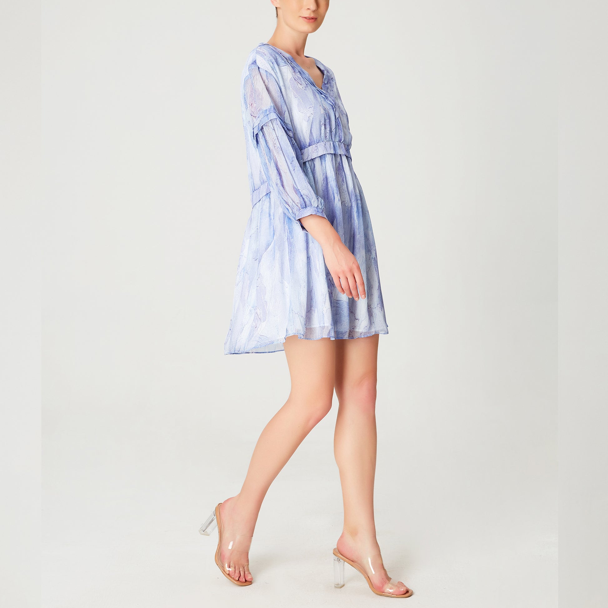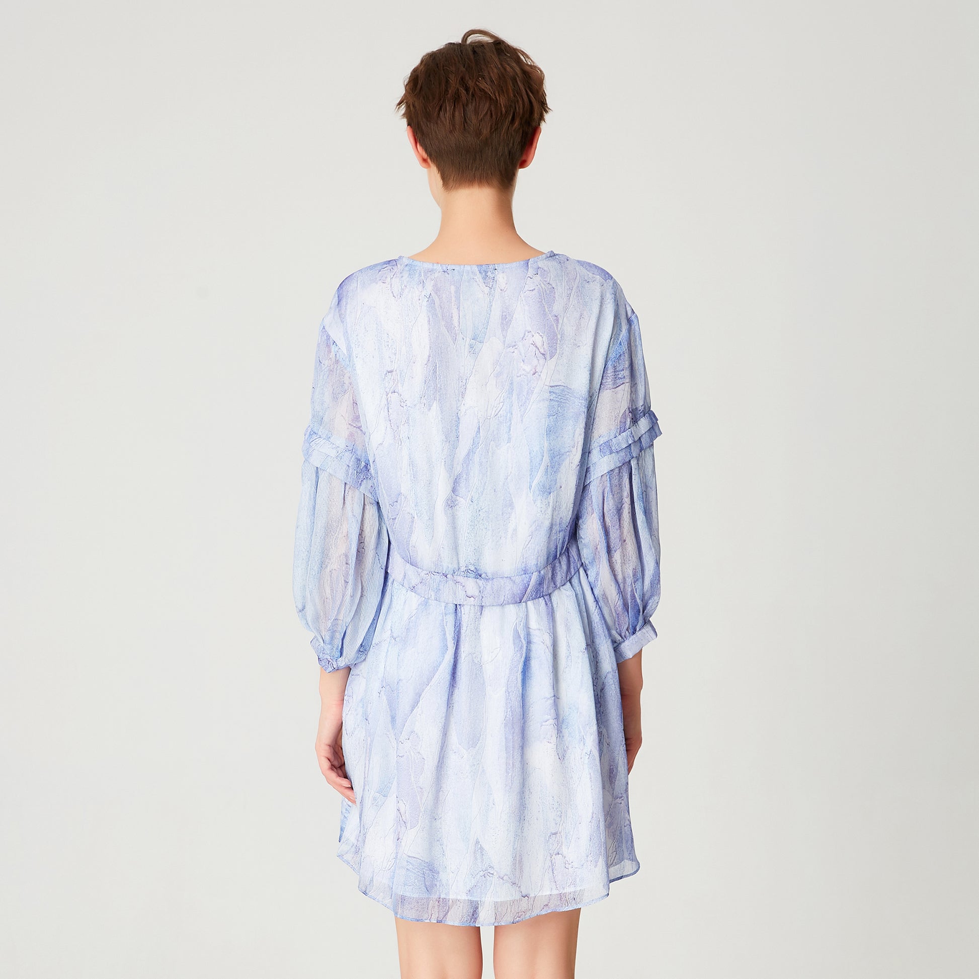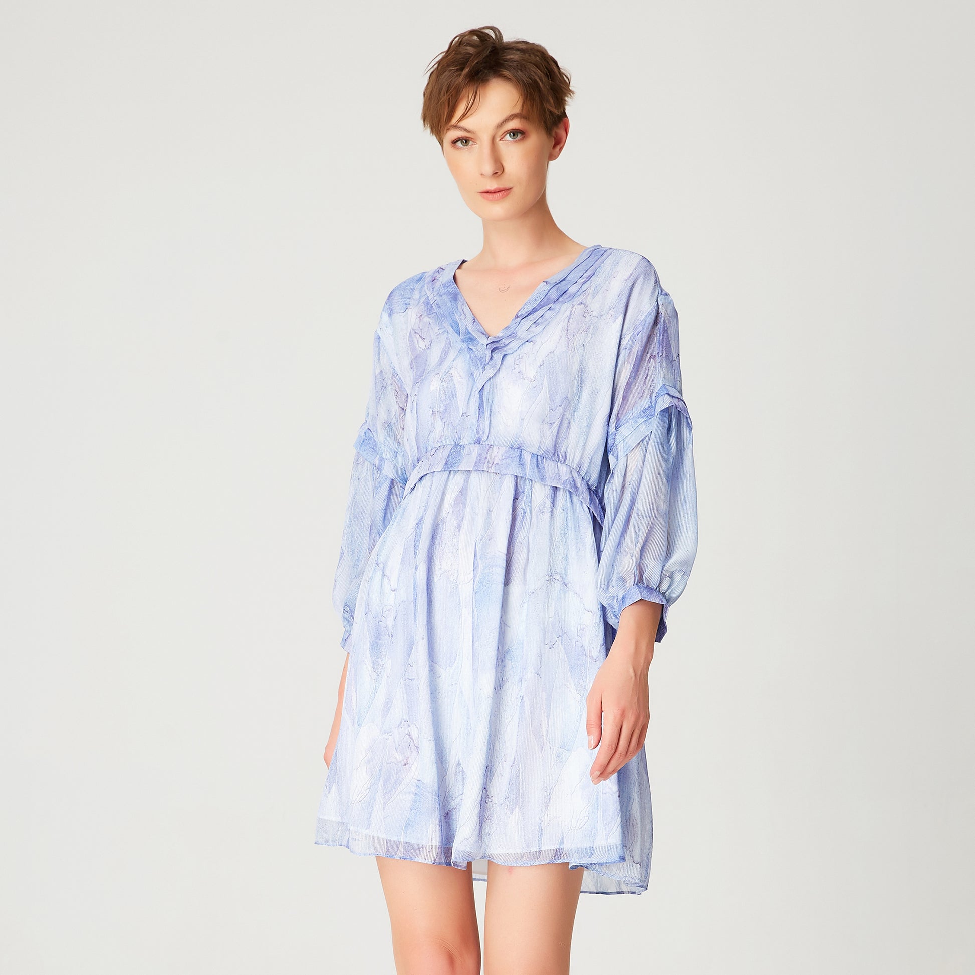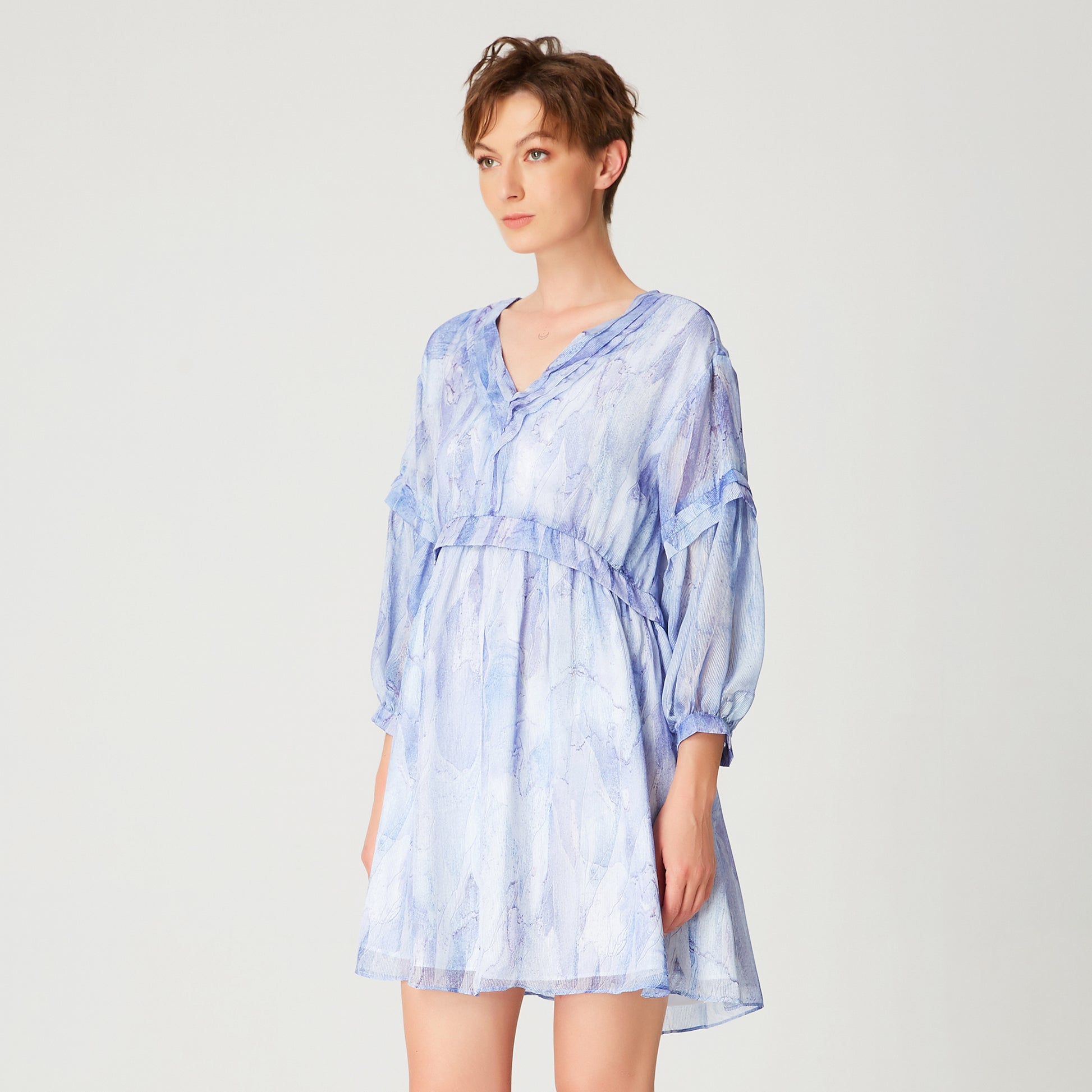 Une pièce ample et légère pour la mi-saison et l’été. Encolure V ornée de plissés, coupe empire soulignant la poitrine et ample volume sur les manches et la jupe. Une coupe élégante et décontractée, adaptée à différentes occasions. À porter avec des sandales ou des baskets en été et des collants et des bottines en automne. Peut également être porte comme une tunique par-dessus un leggins.
