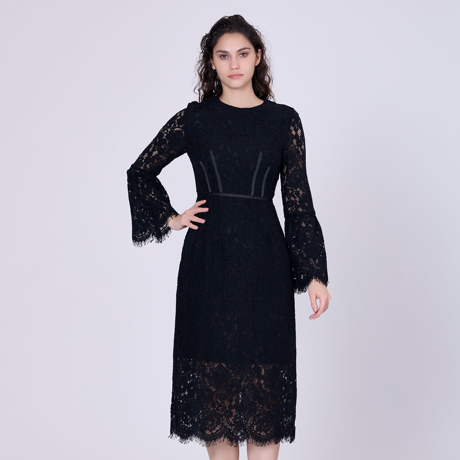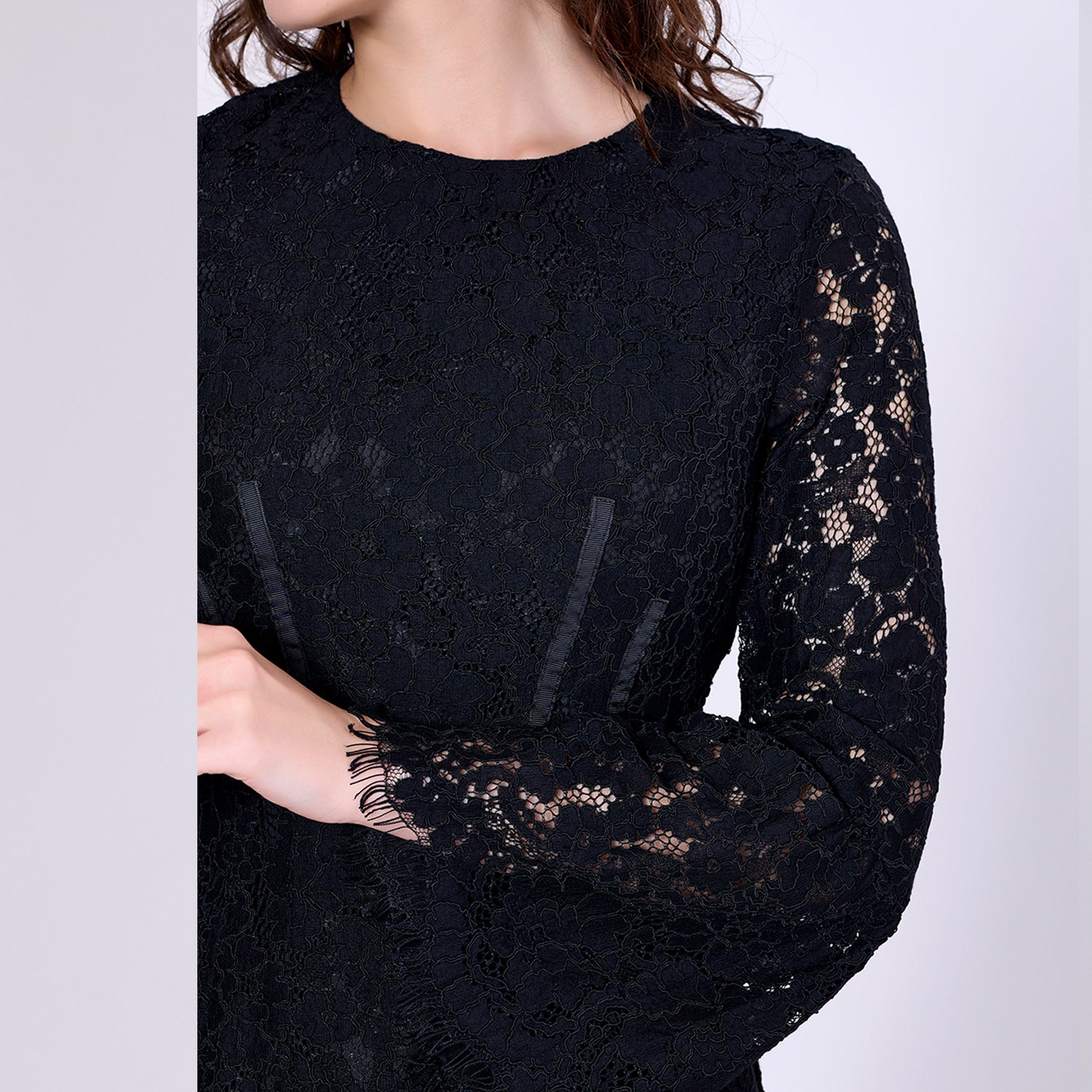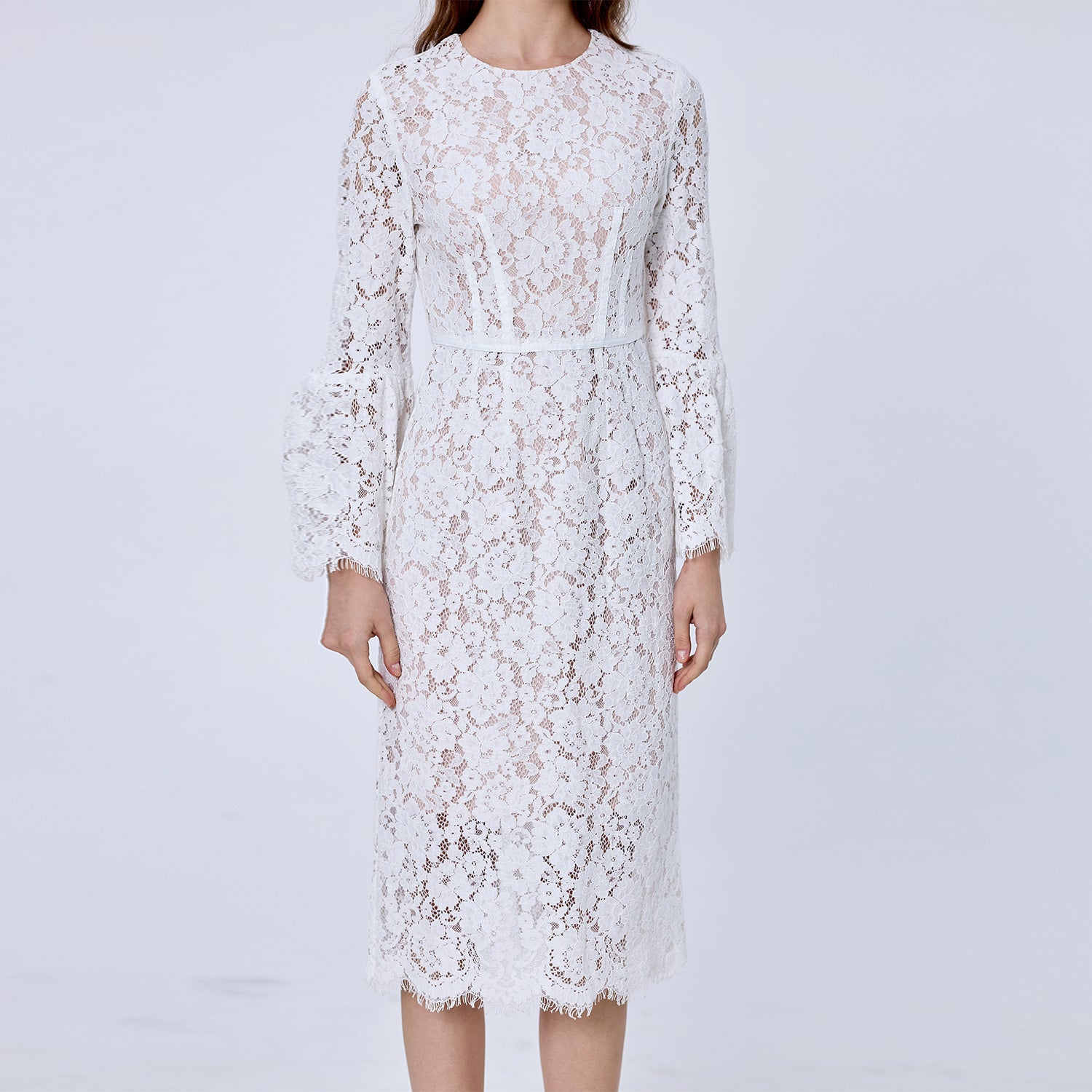 Robe en dentelle ajustée à lignes bustier et manches tulipes