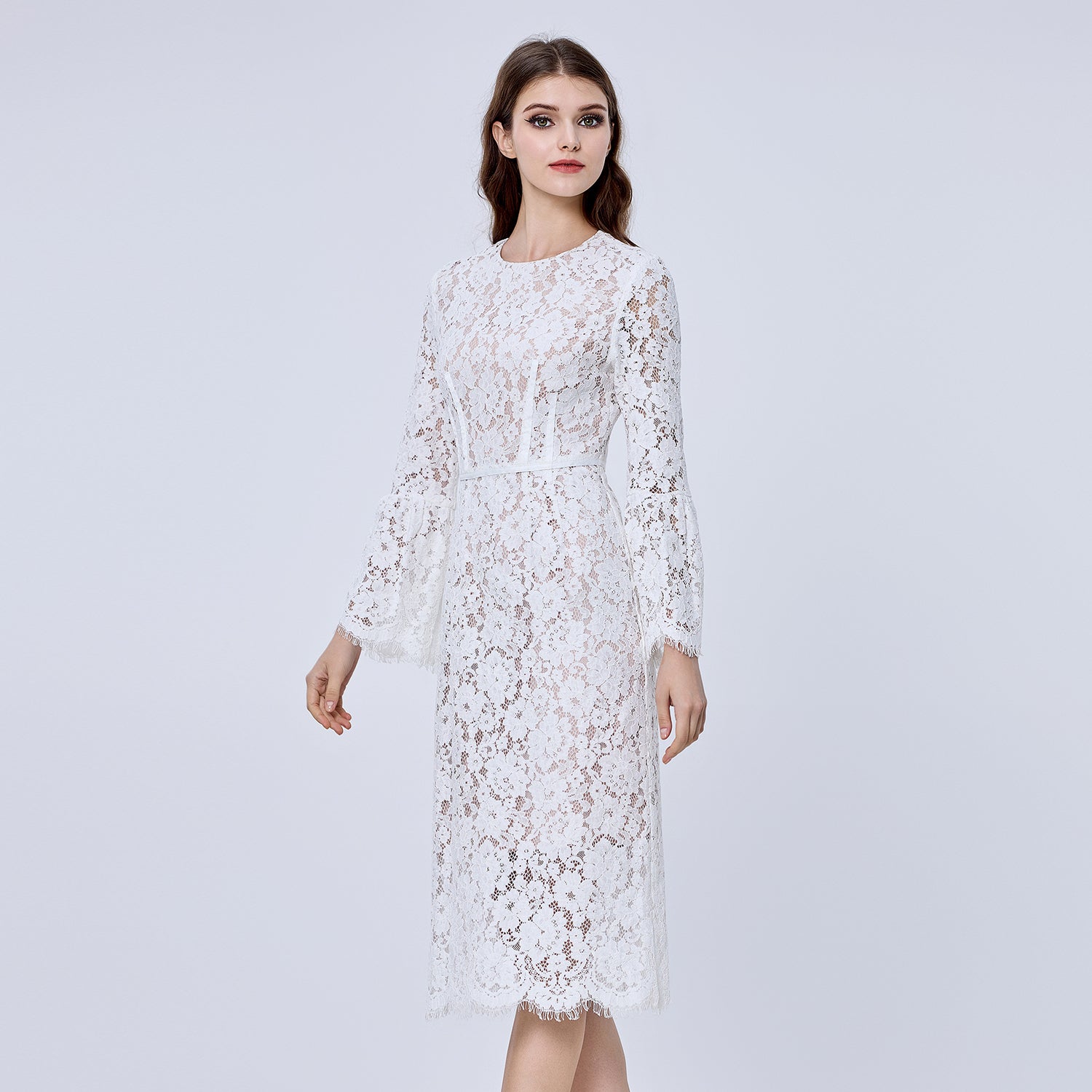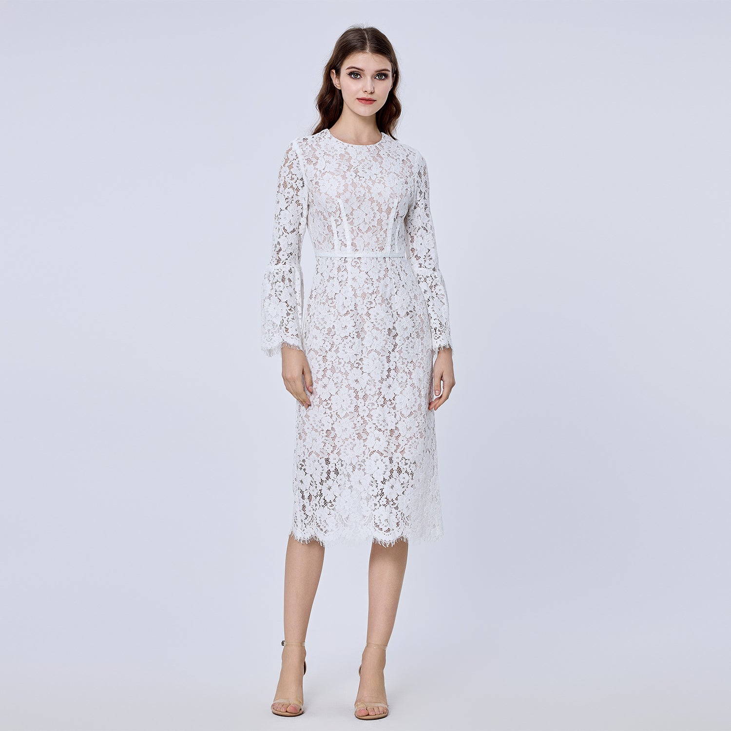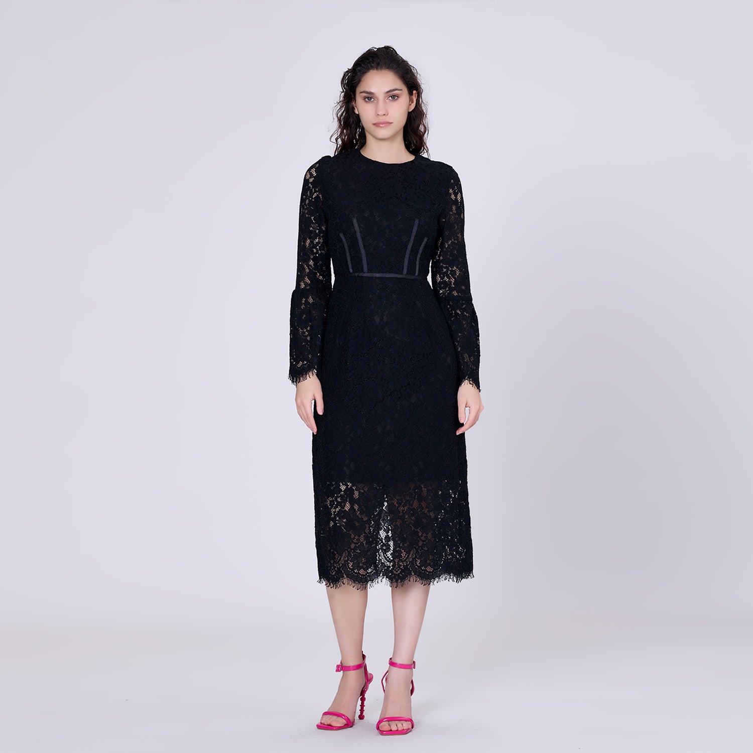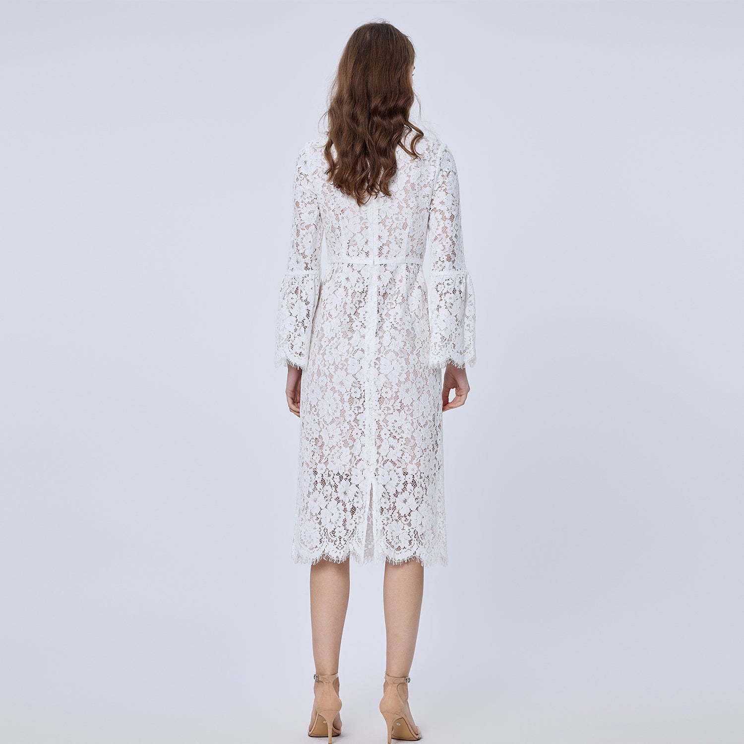 Robe en dentelle ajustée à lignes bustier et manches tulipes
