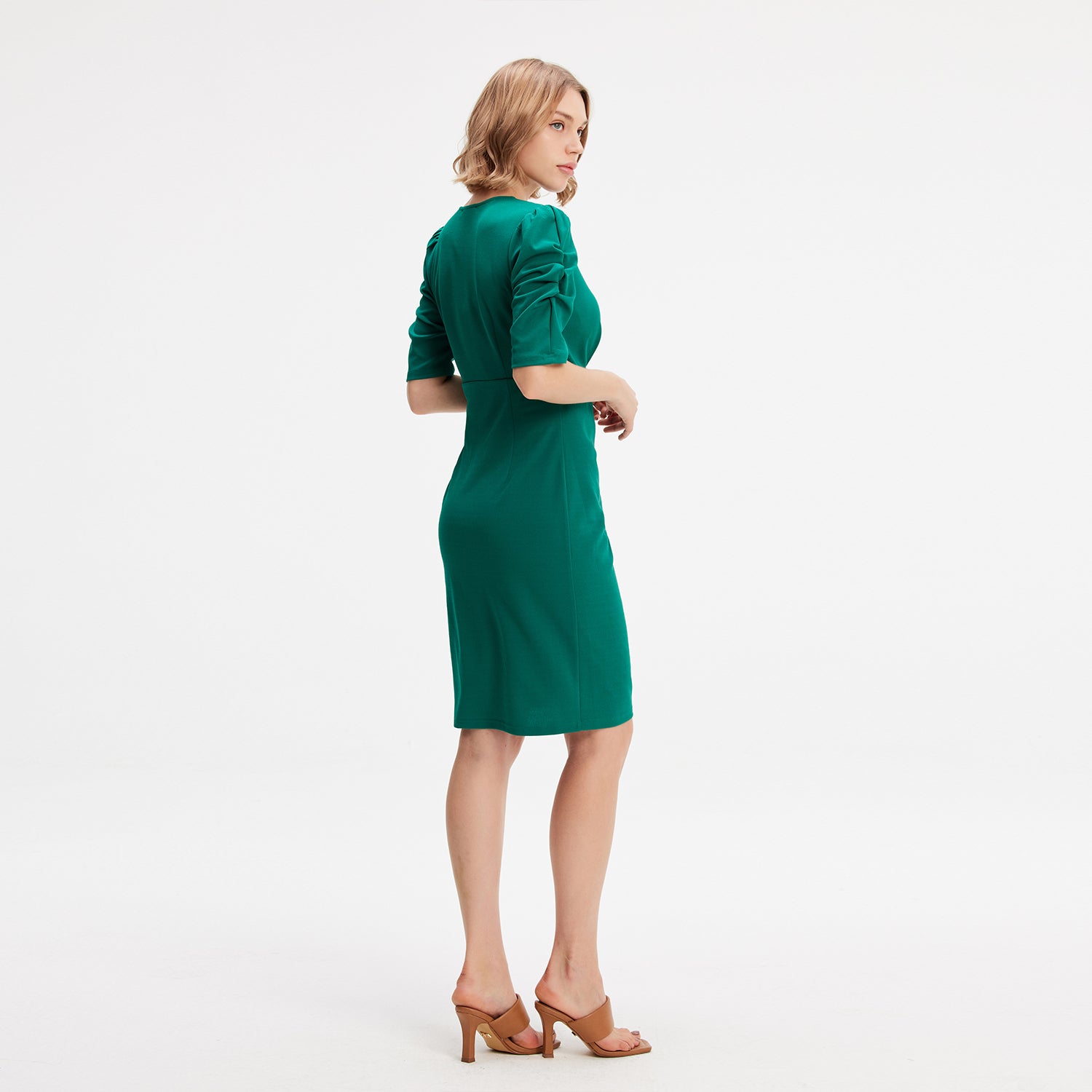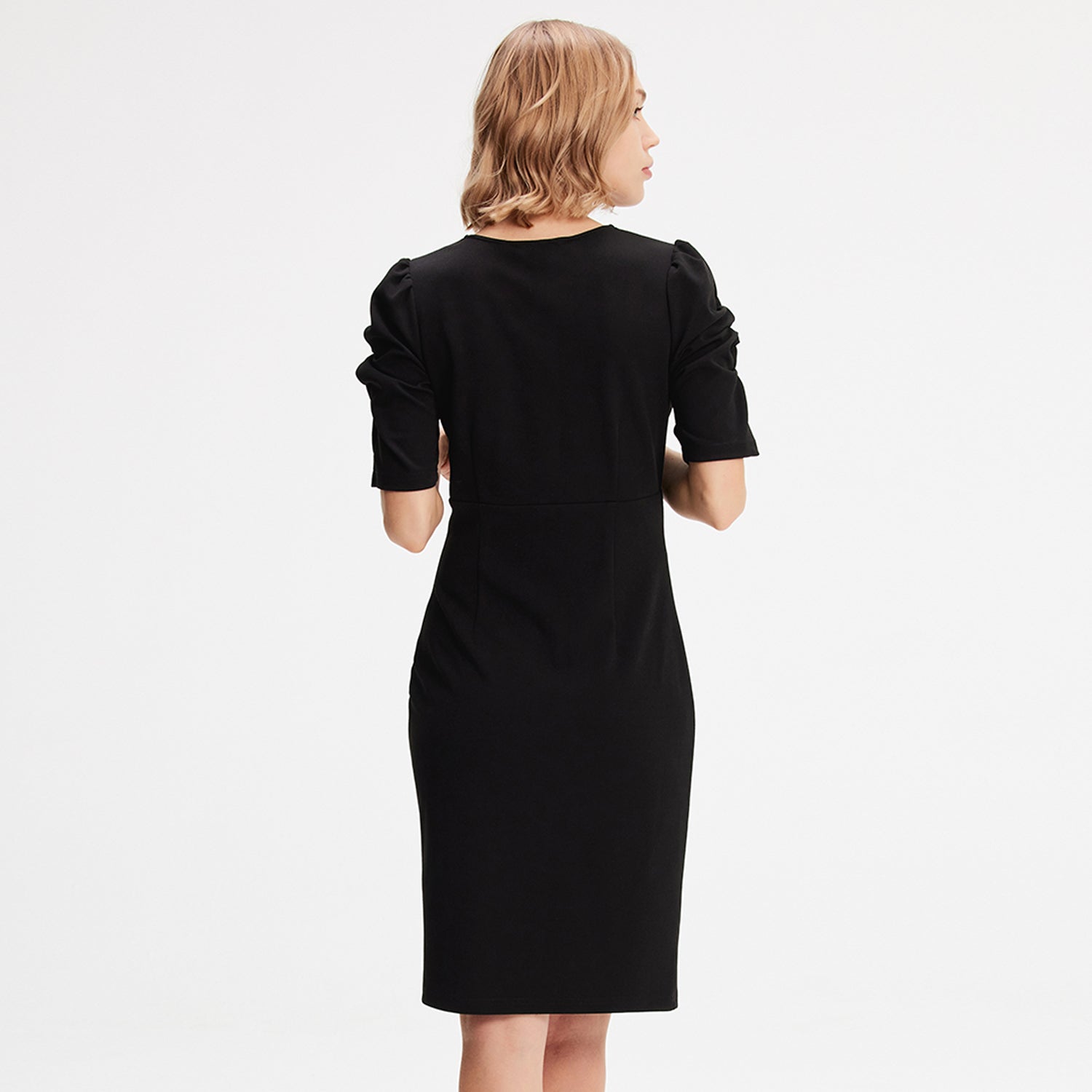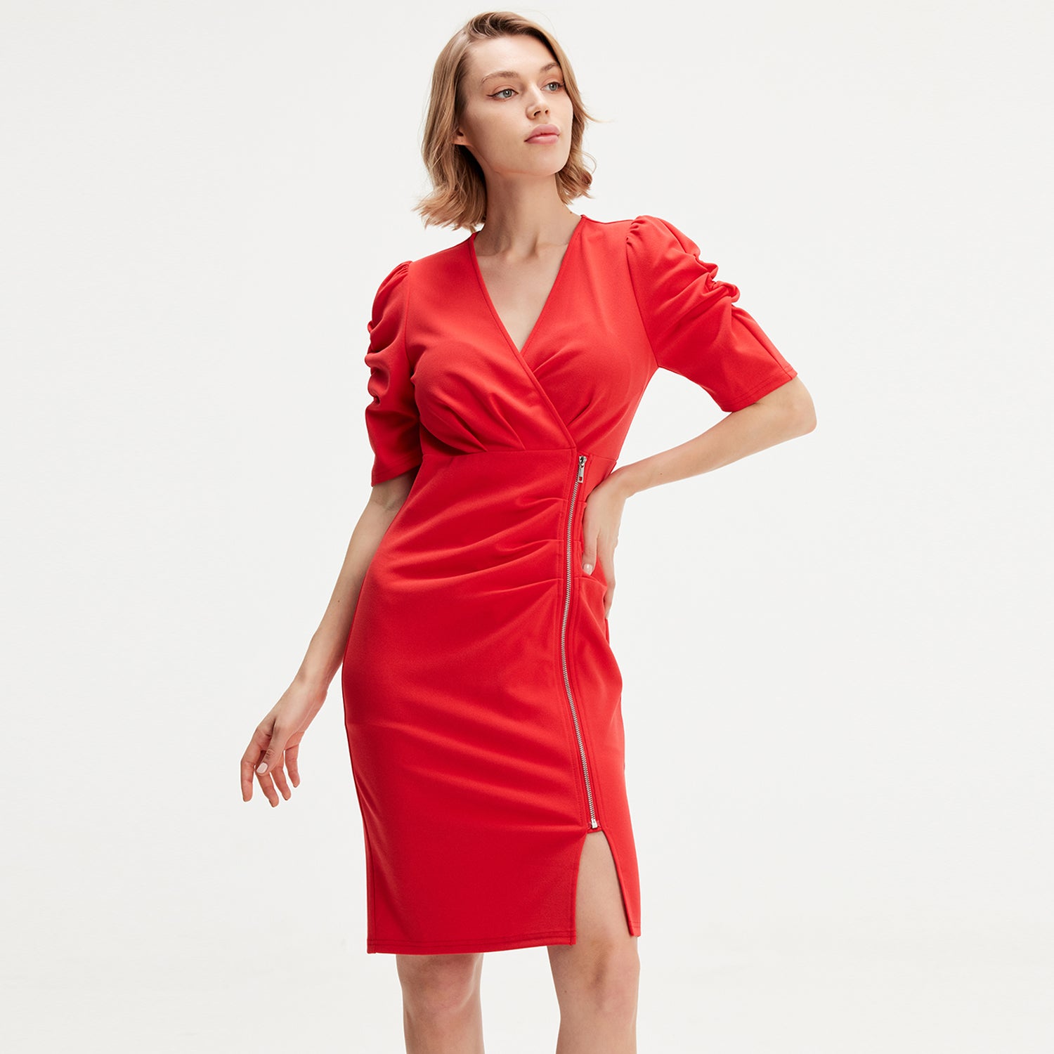 Confortable et séduisante, cette pièce souligne élégamment ma silhouette par sa découpe empire, son décolleté V et sa ligne près du corps. Ouverte sur le côté- devant grâce à un zip et un système portefeuille. Manches agrémentés de fronces. A porter en journée comme en soirée.