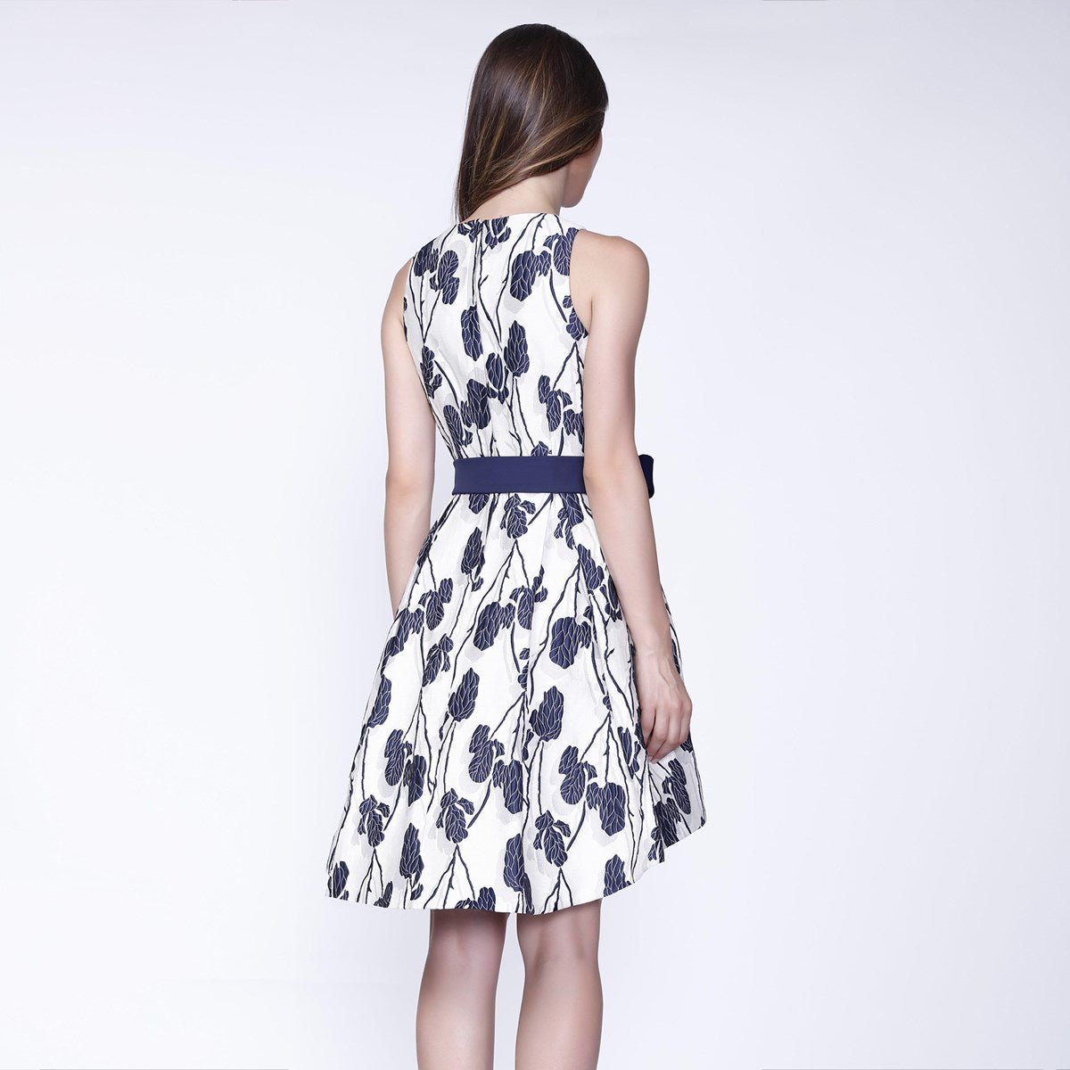 Robe patineuse en jacquard fleuri et ceinture ajoutée
