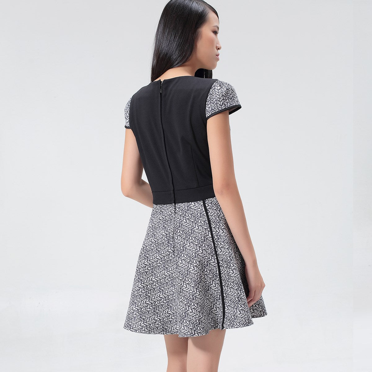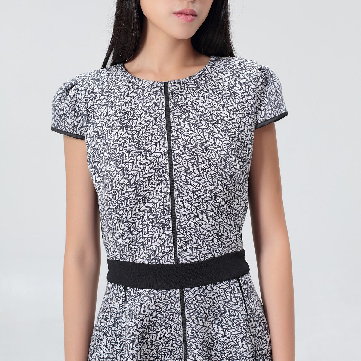 Robe patineuse imprimé géométrique et garniture jersey