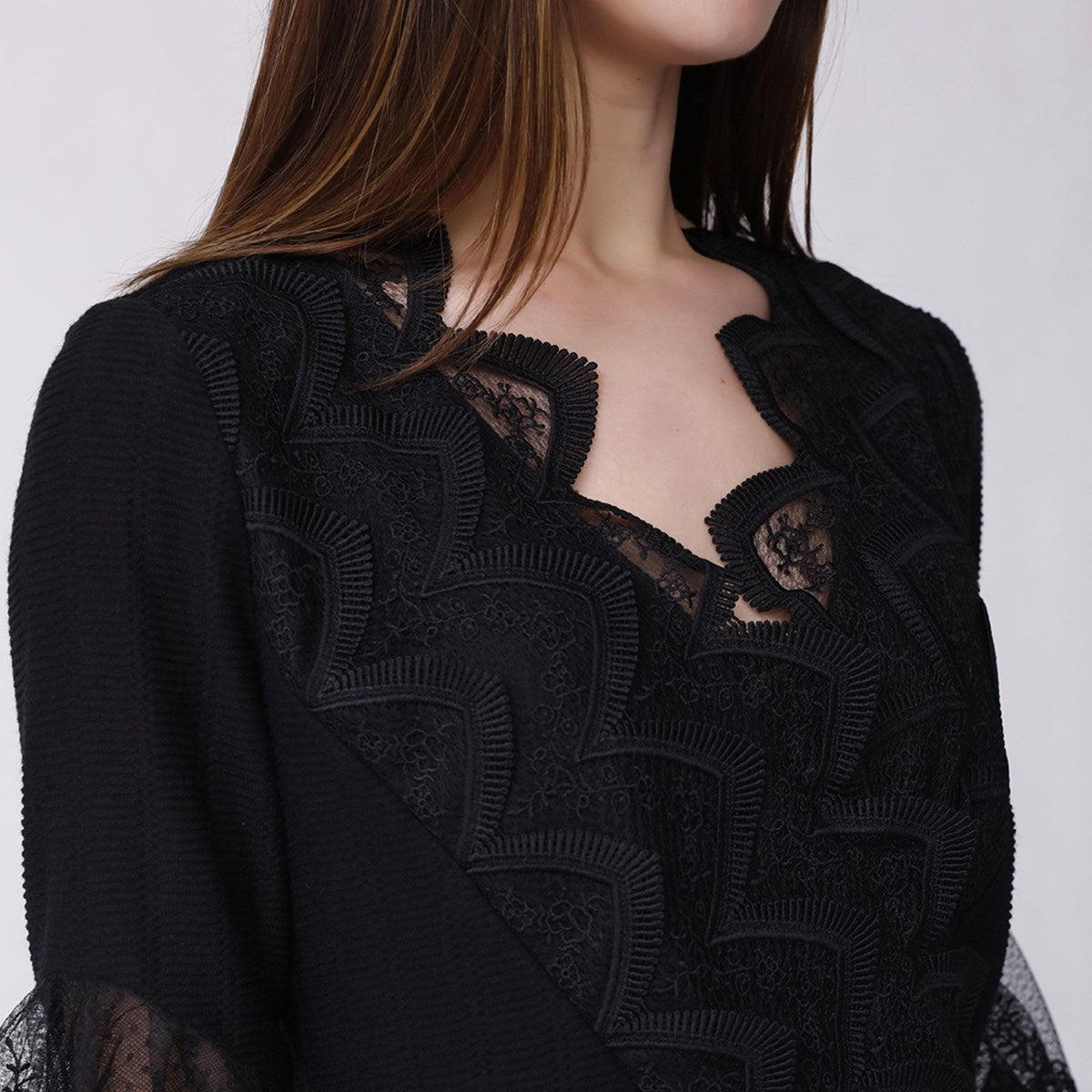 Une pièce garnie aux manches et au décolleté de galons de dentelle qui donne une allure chic et féminine. Un cintrage à la taille s’ajuste grâce au système portefeuille. Coupé dans une maille texture, ce top Cache-Cœur s’associe avec des pièces simples et minimalistes comme un pantalon droit ou une jupe crayon.