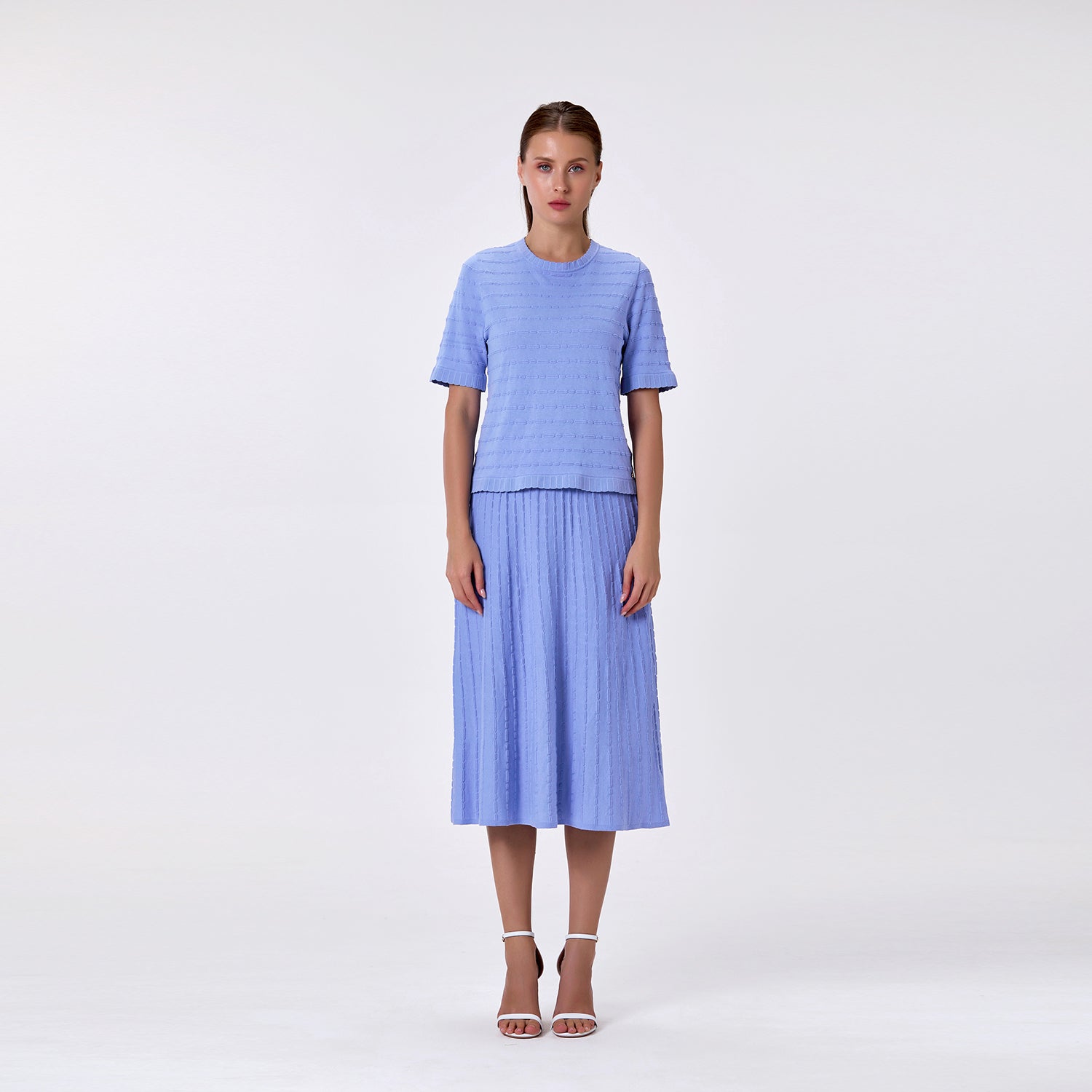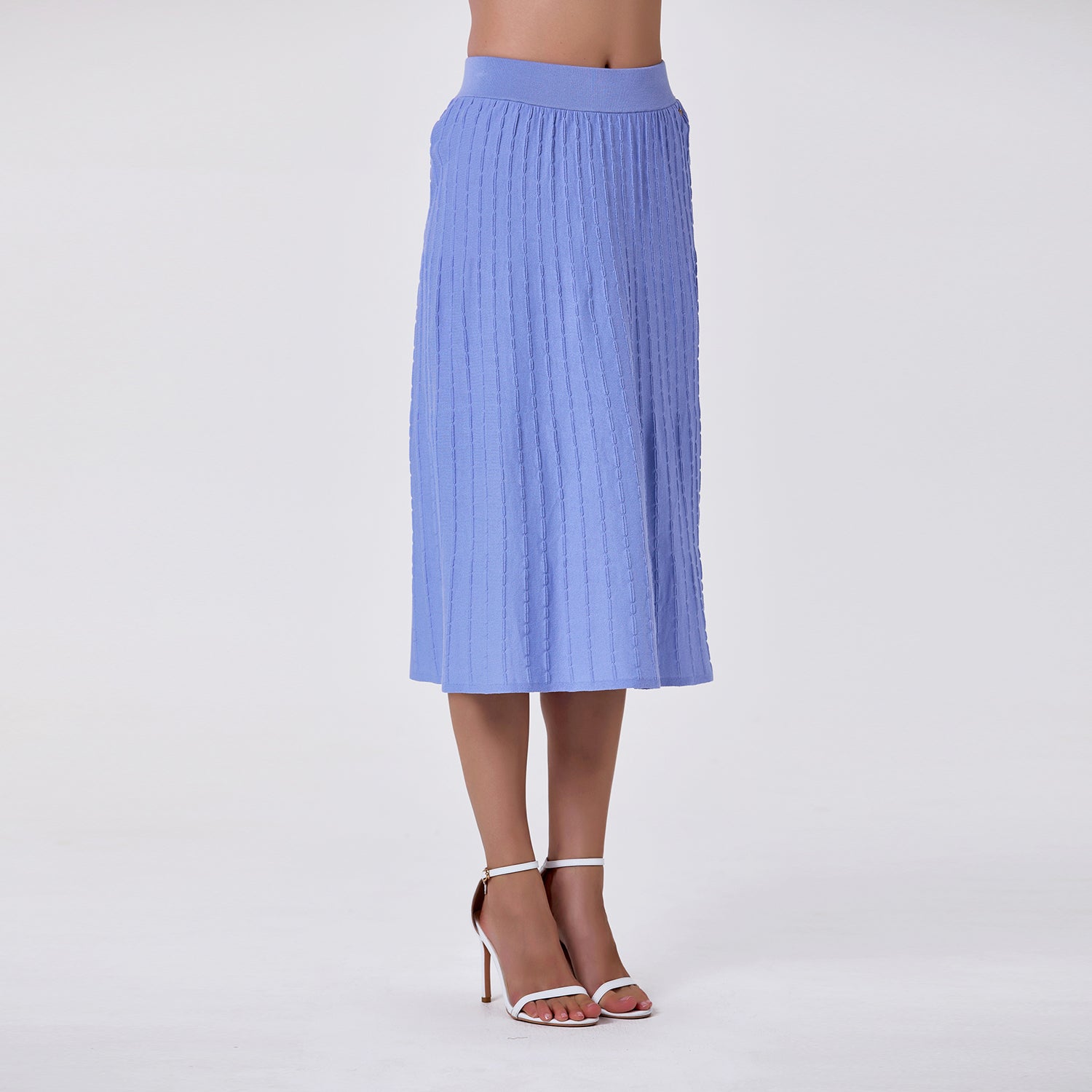 Confort et élégance se rencontrent dans cette jupe tricotée en coton, idéale pour un look à la fois chic et décontracté. Sa maille douce et respirante épouse les mouvements tout en offrant une sensation agréable sur la peau. Sa longueur midi et sa coupe fluide en font une pièce polyvalente, parfaite à associer avec un top en maille assorti ou une blouse légère.