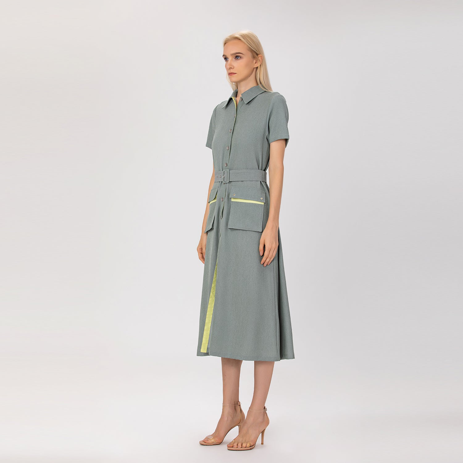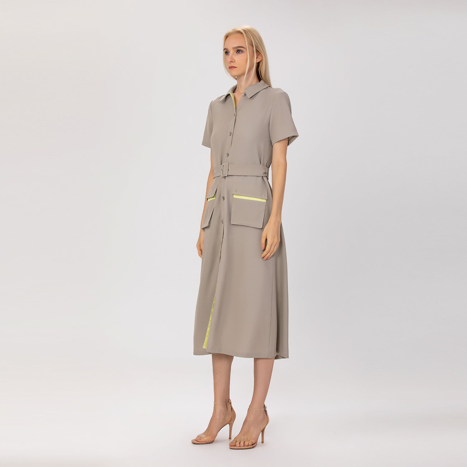 Robe chemisier midi à poches plaquées
