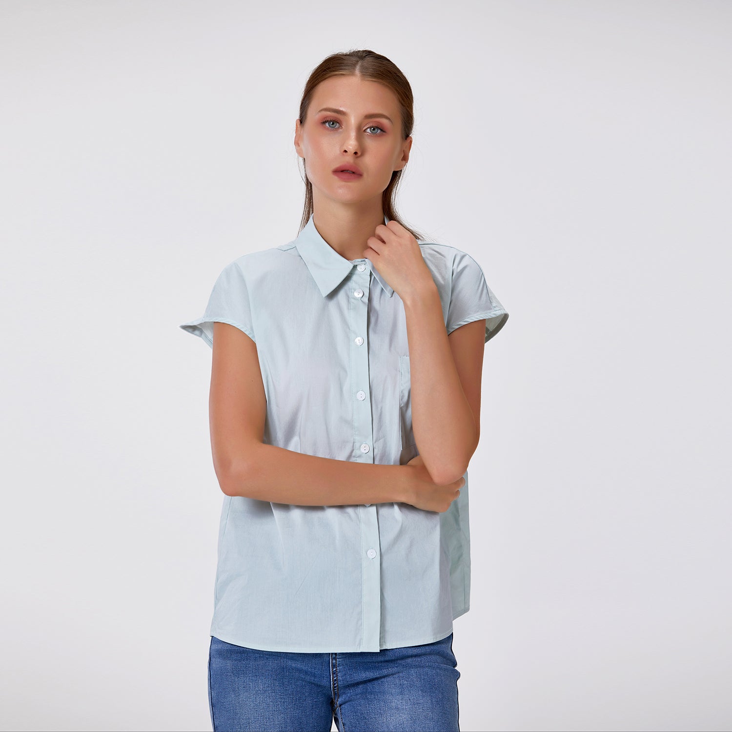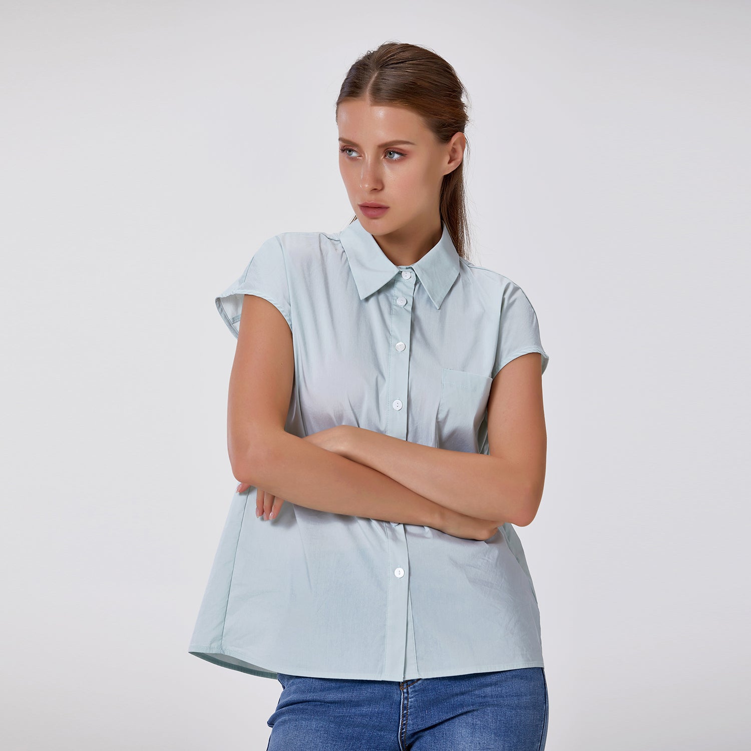 Un incontournable du vestiaire féminin, ce chemisier mise sur la simplicité élégante et la polyvalence. Sa coupe droite et son col chemise en font une pièce facile à porter et à associer, aussi bien avec un pantalon habillé qu’avec une jupe estivale. Boutonné sur le devant, il allie confort et raffinement dans un style intemporel.