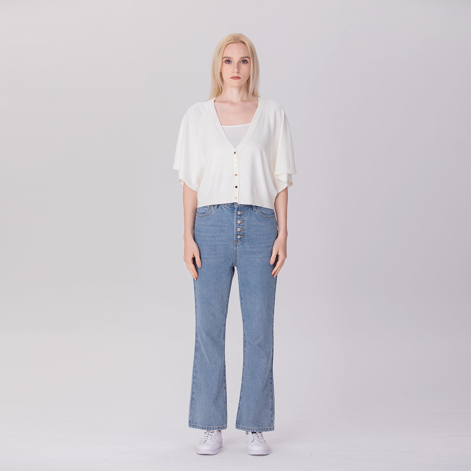 Ce cardigan séduit par son style minimaliste et sa maille légère qui allie confort et élégance. Sa coupe courte (50,5 cm) et ses manches larges apportent modernité et fluidité, tandis que sa fermeture boutonnée devant en fait une pièce facile à porter au quotidien. Conçu en coton et acrylique, il offre douceur et respirabilité, idéal pour compléter un look casual chic ou habillé.