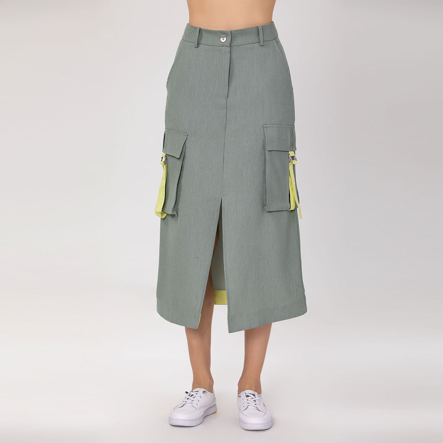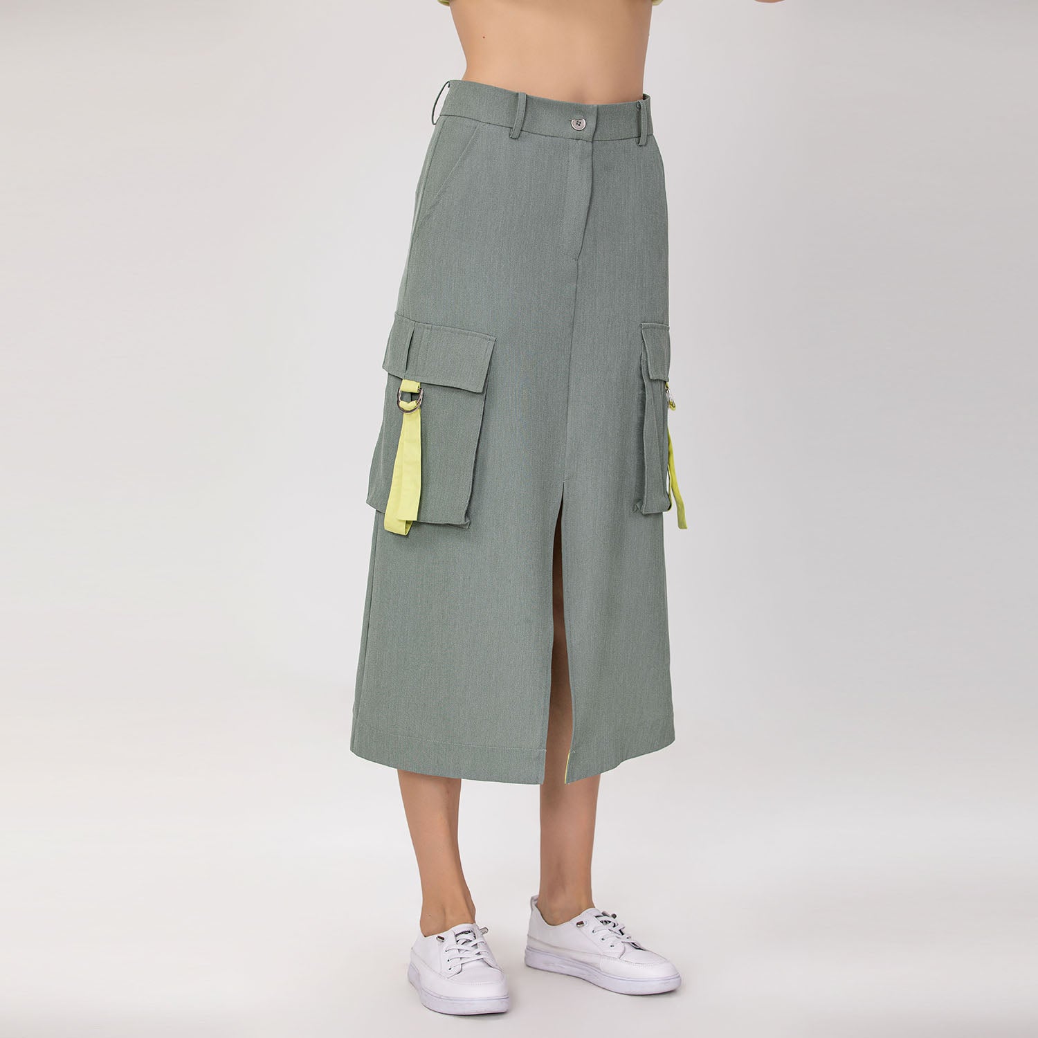 Jupe cargo midi avec poches à rabat