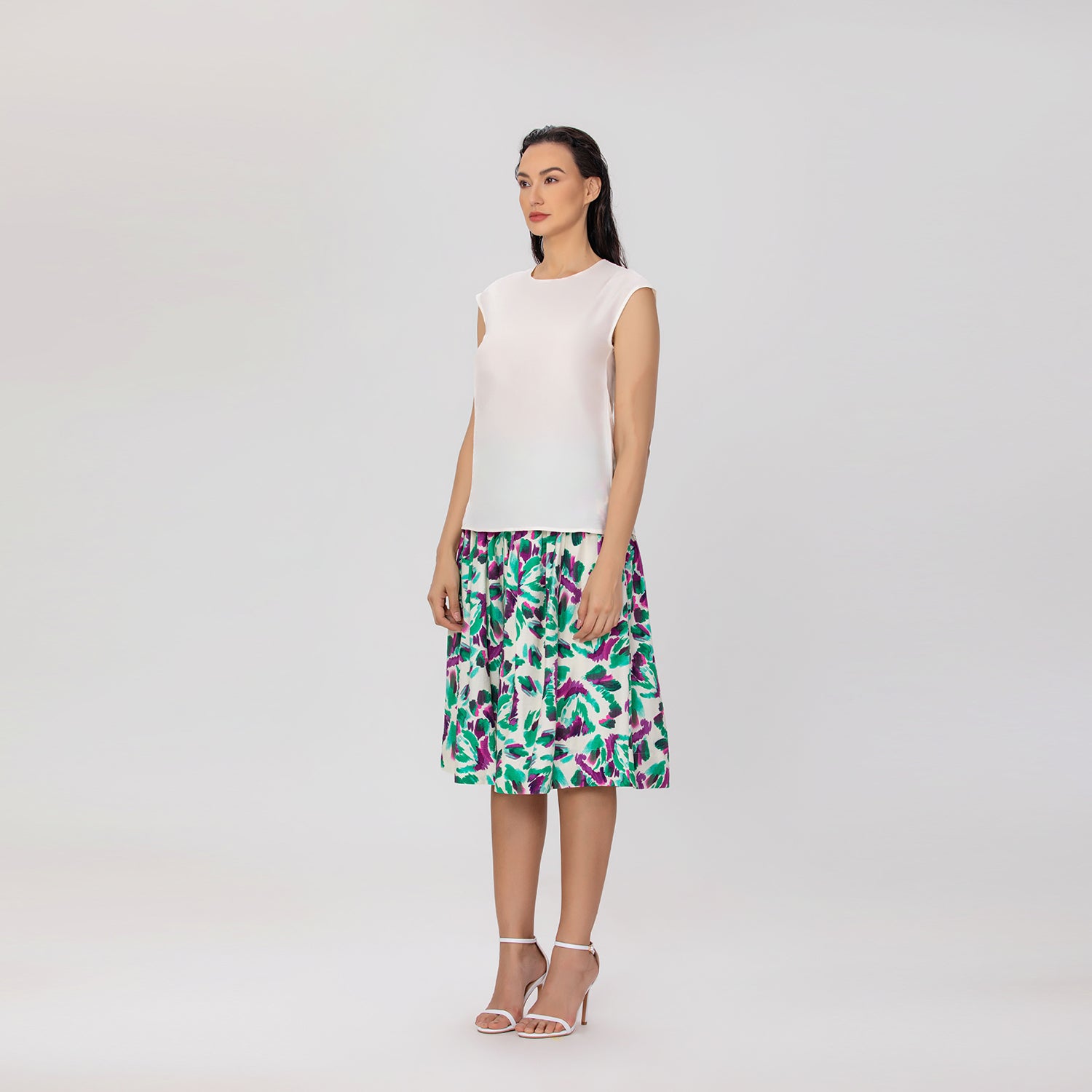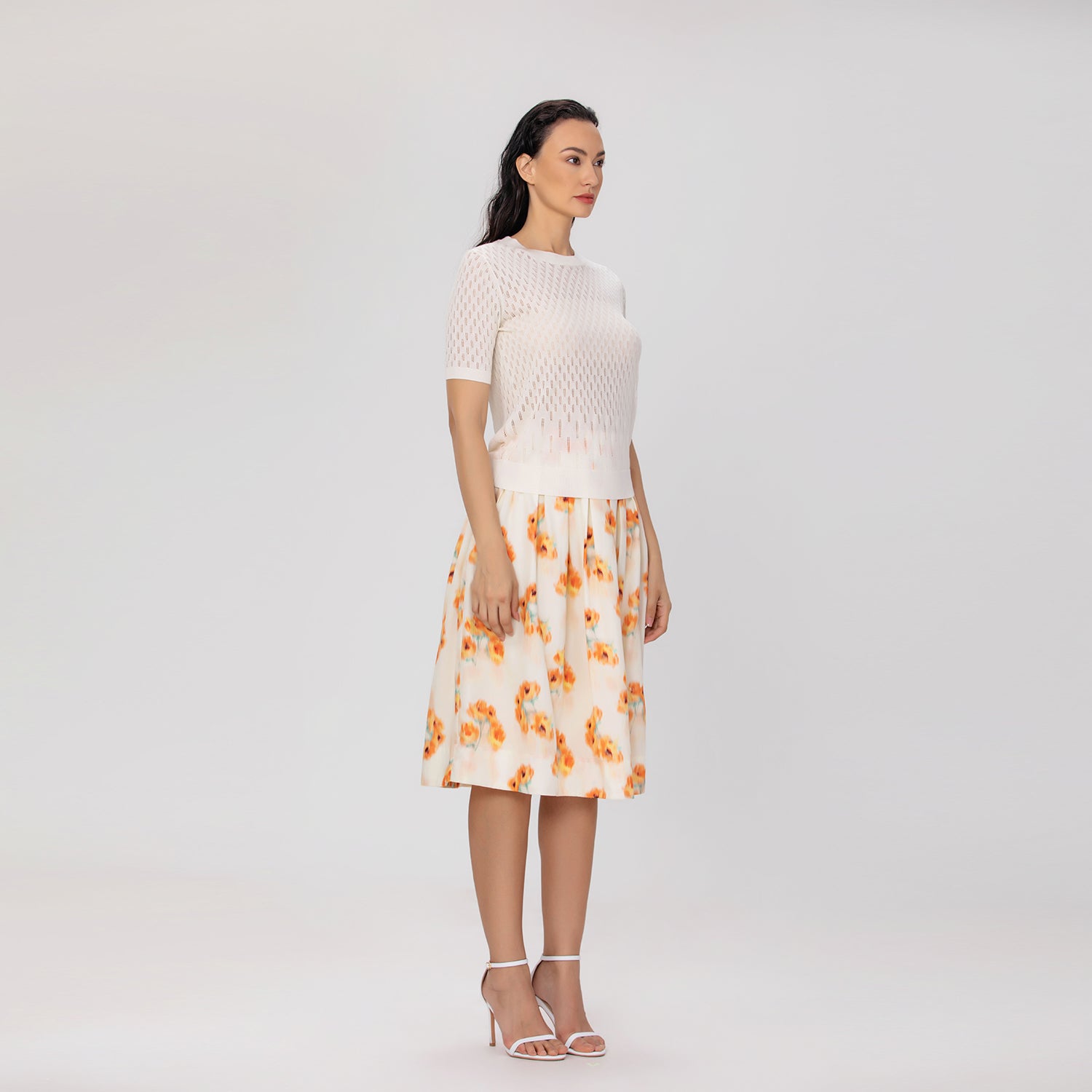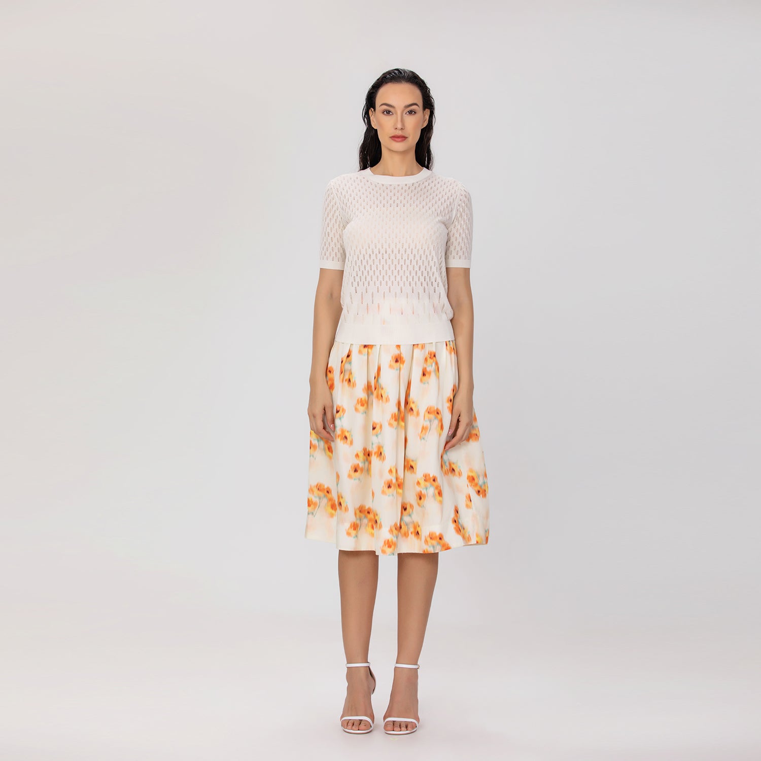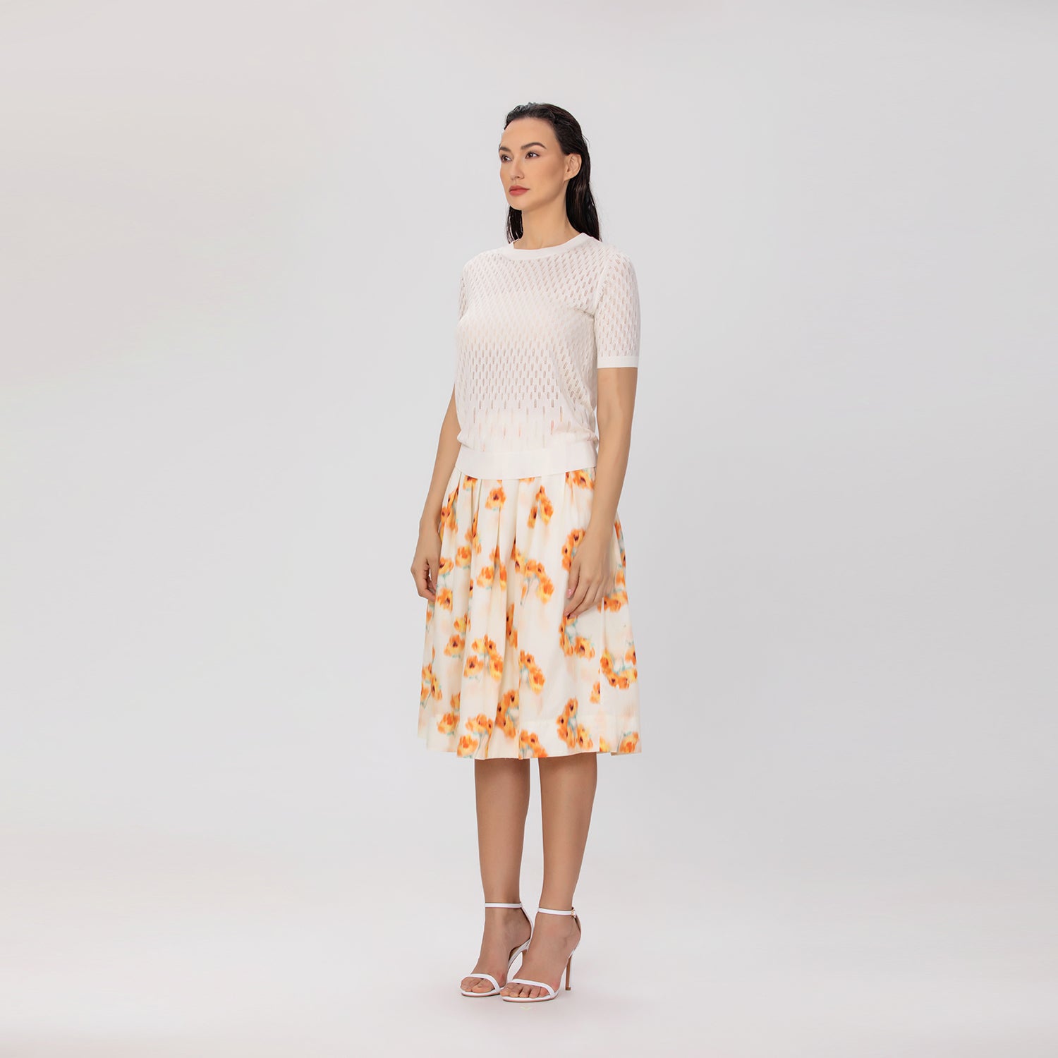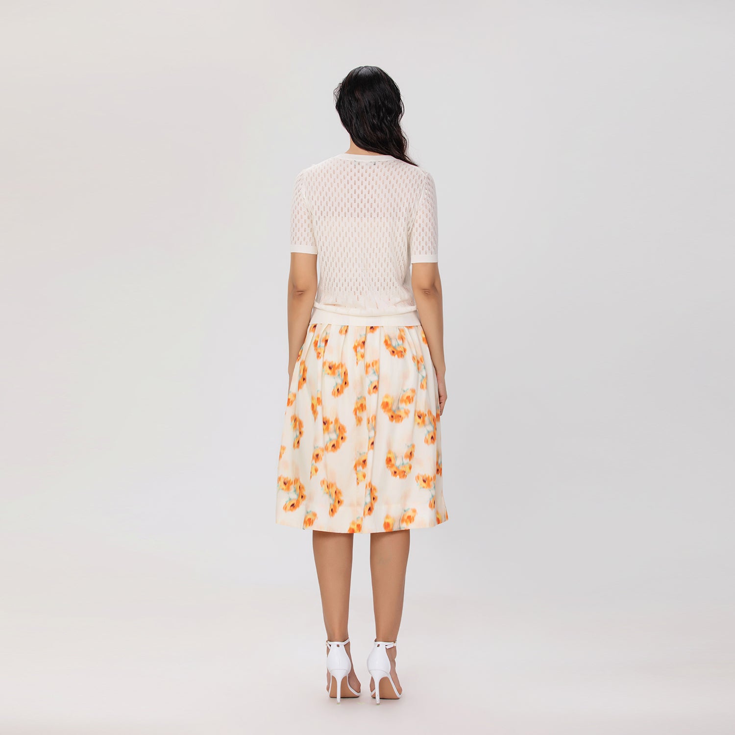 Cette jupe midi séduit par sa coupe féminine et son imprimé fleuri éclatant qui apporte fraîcheur et élégance. Conçue en polyester fluide, elle tombe avec légèreté et assure un confort optimal. Avec sa longueur de 71 cm, elle se porte facilement au quotidien comme lors d’occasions spéciales. À associer avec un haut uni pour un look harmonieux et raffiné.