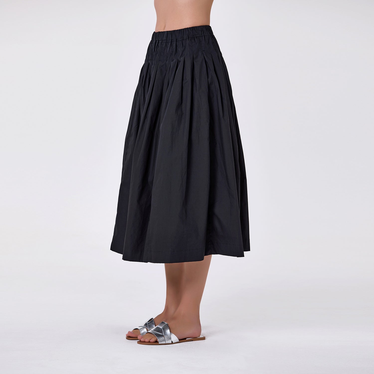 Jupe midi ample en coton à taille smockée