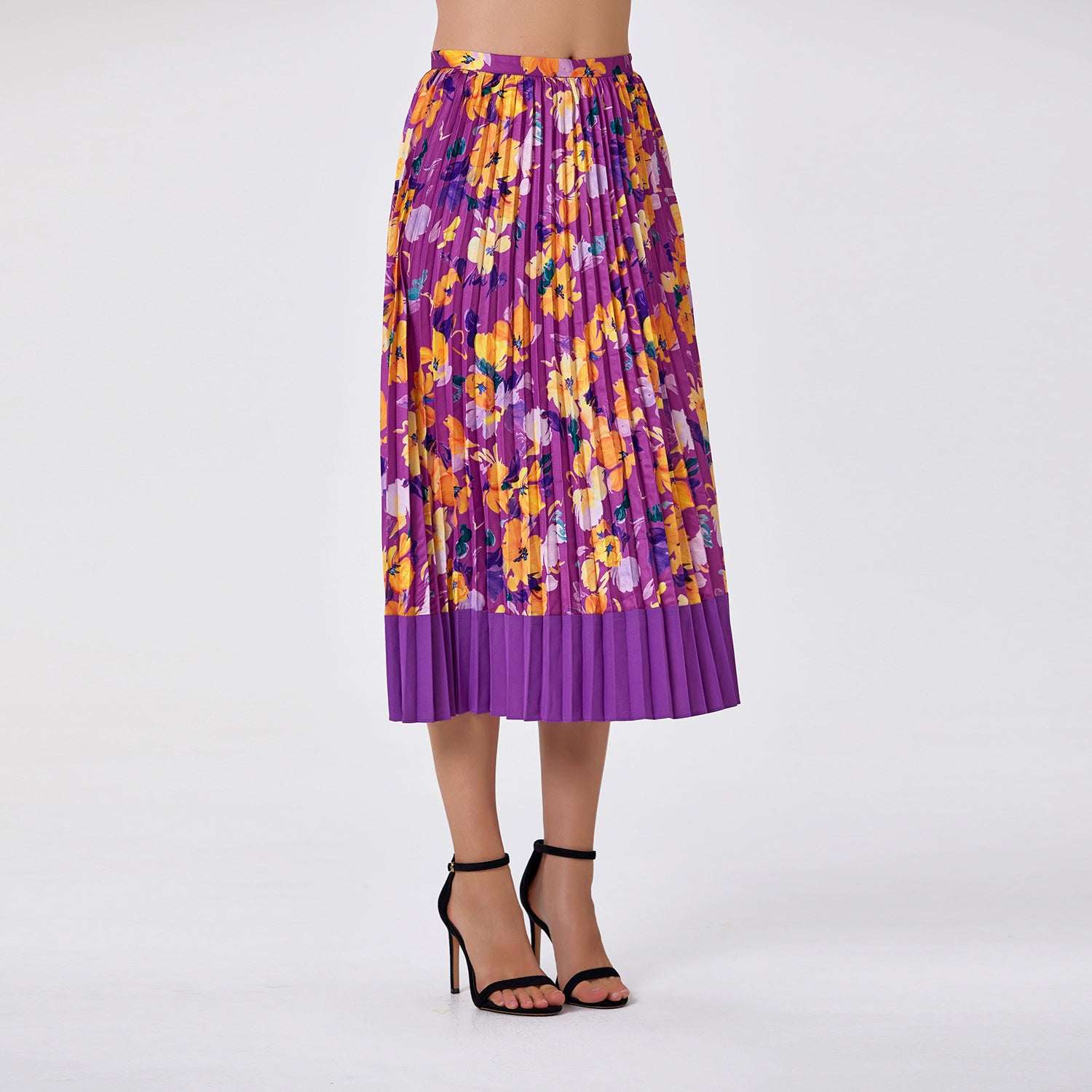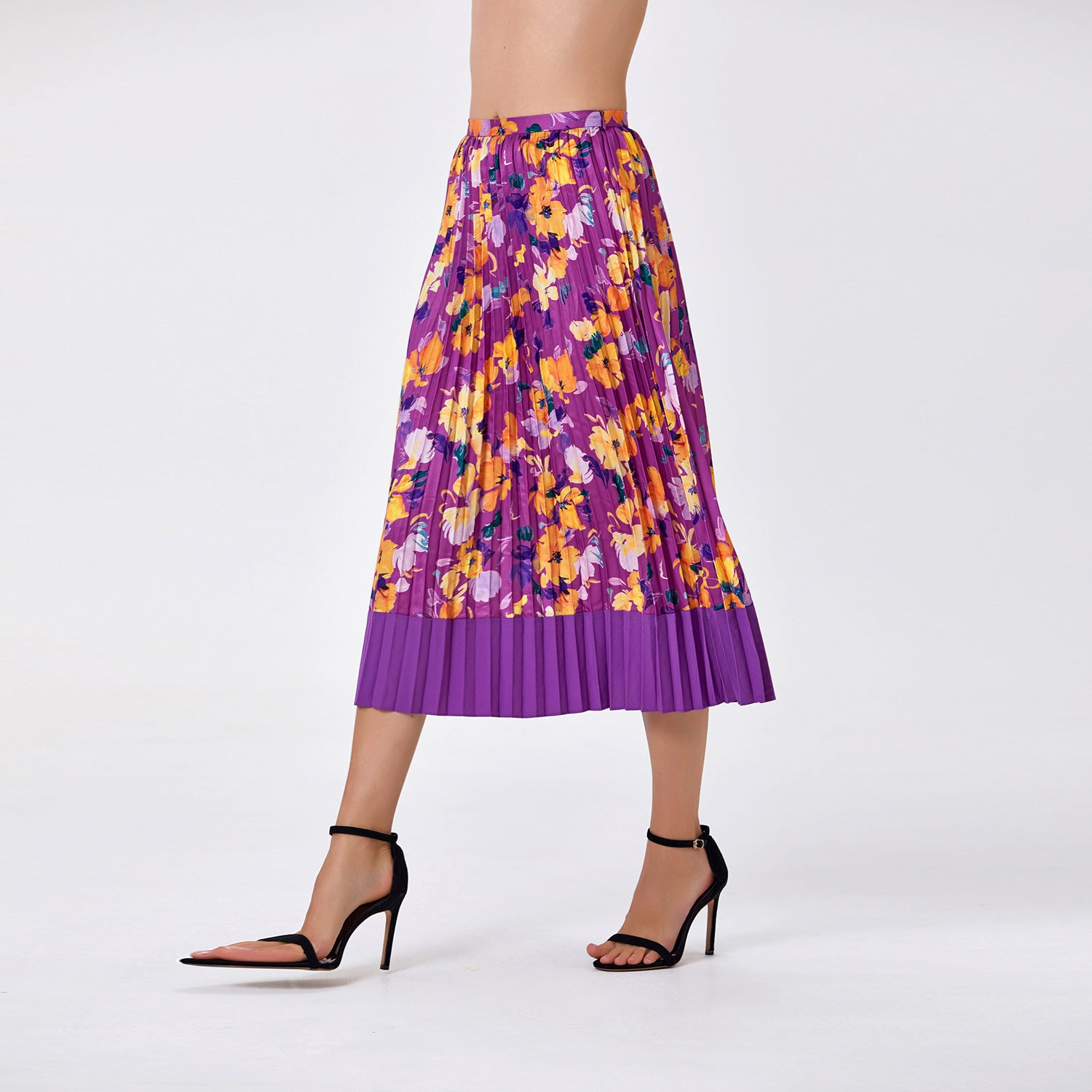 Féminine et pleine de fraîcheur, cette jupe midi plissée séduit par son imprimé coloré et sa coupe fluide qui accompagne élégamment chaque mouvement. Longueur parfaite et confort assuré grâce à sa taille élastiquée, elle est idéale pour un look chic et décontracté, au quotidien comme pour des occasions spéciales.