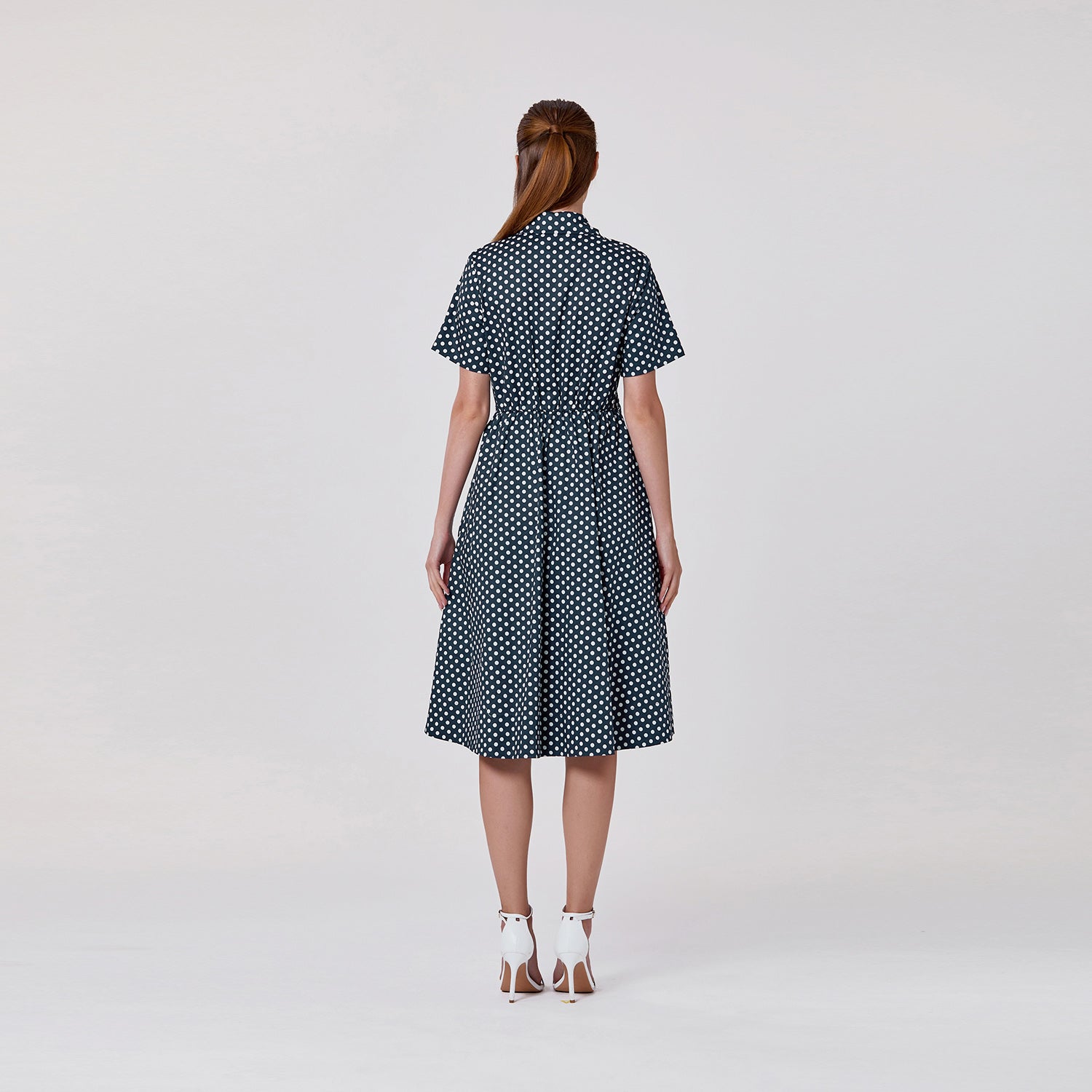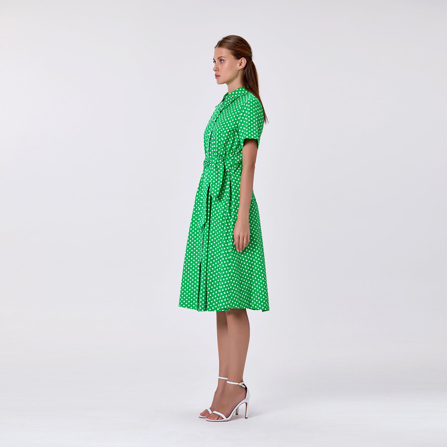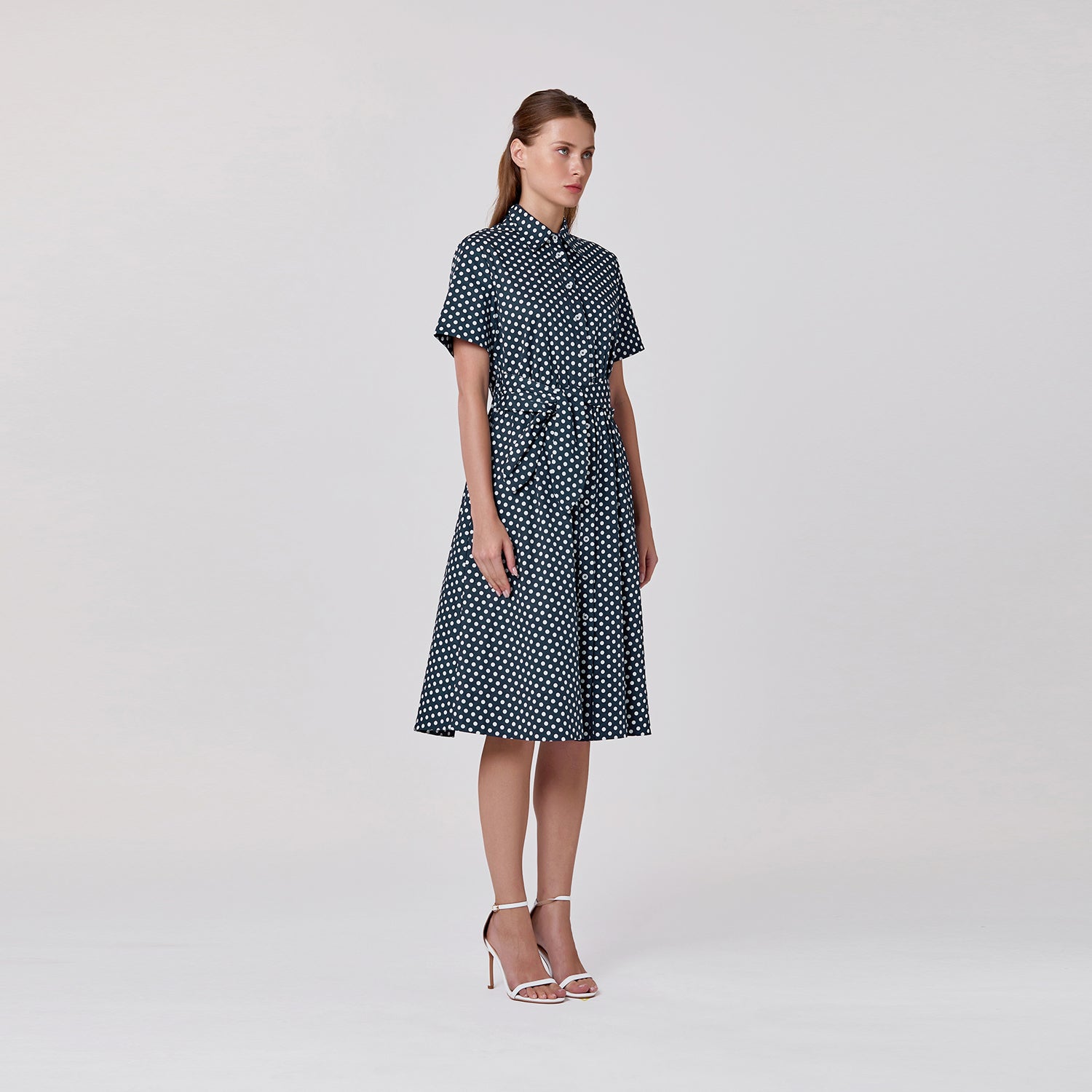 Robe chemise à pois avec ceinture