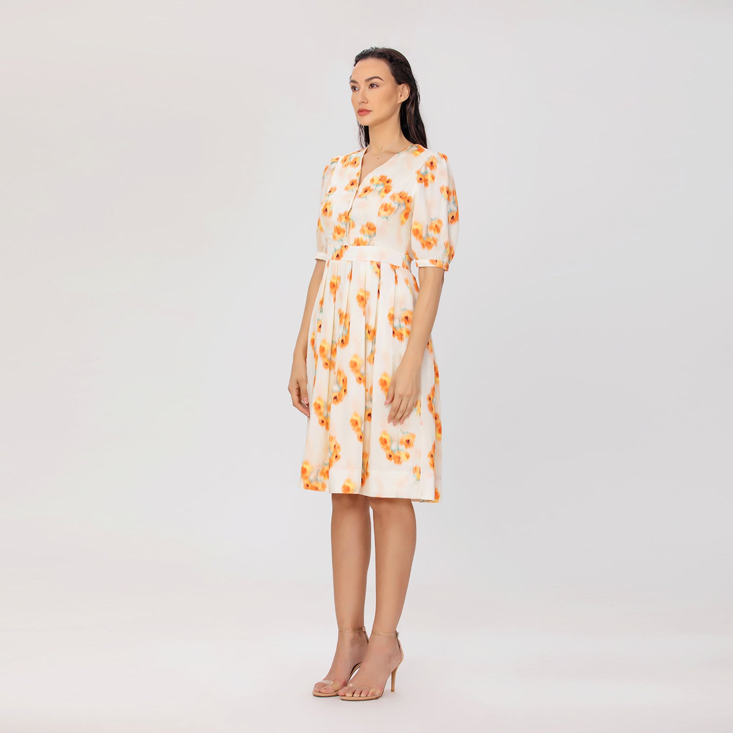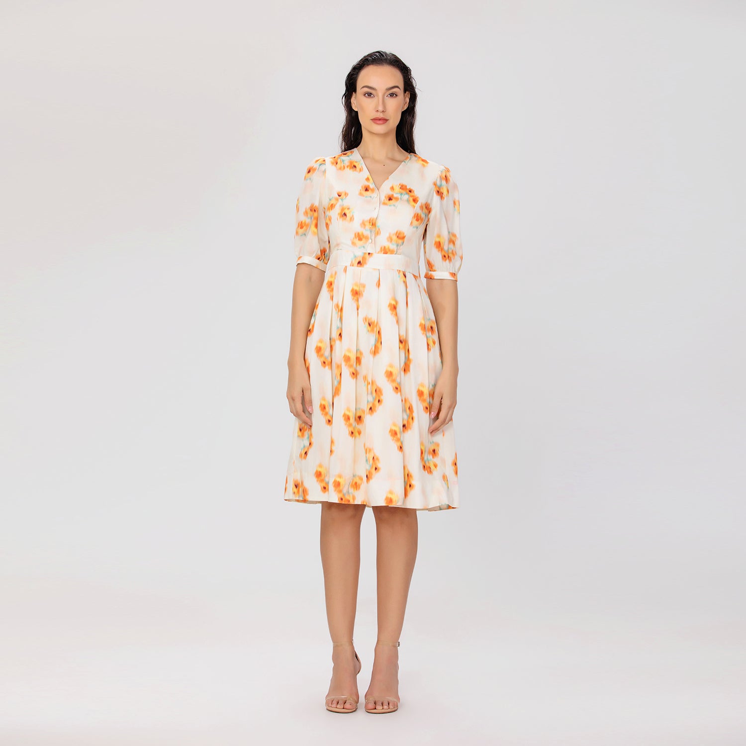 Féminine et pleine de fraîcheur, cette robe midi se distingue par son imprimé coloré et sa coupe élégante. Dotée d’un col en V et de manches courtes, elle met en valeur la silhouette tout en restant confortable. Sa longueur de 107,5 cm lui confère un tombé raffiné, idéal pour un look chic de jour comme de soirée. Confectionnée en viscose mélangée, elle allie fluidité et légèreté pour un porté agréable.