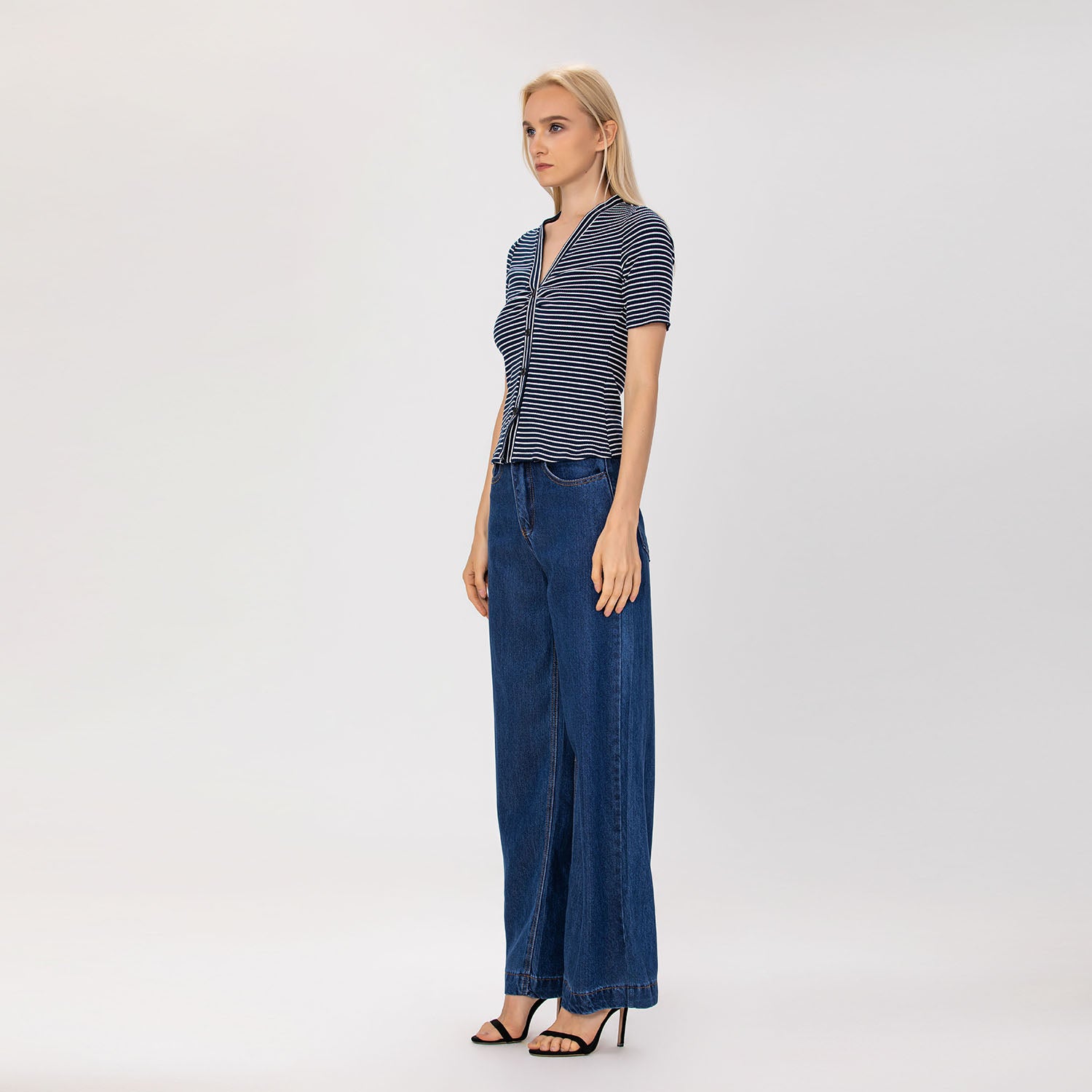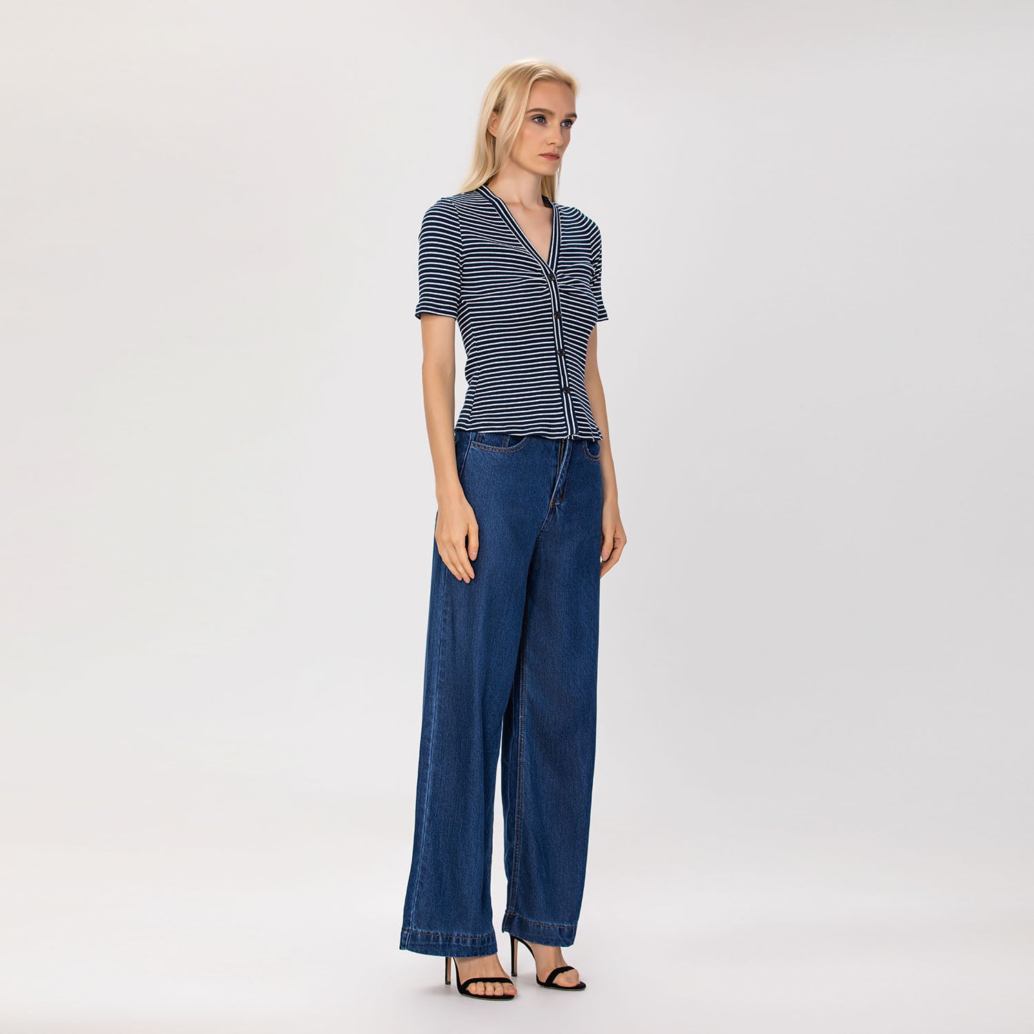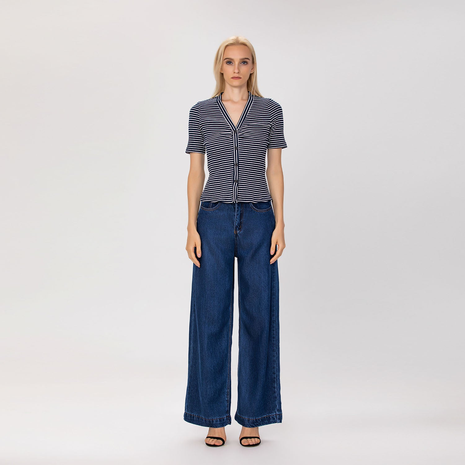 Ce chemisier en jersey associe confort et élégance grâce à sa matière douce et extensible. Confectionné en coton, il épouse la silhouette sans contraindre et se distingue par ses rayures discrètes et sa fermeture boutonnée. Sa longueur de 57,5 cm et son col en V apportent une touche féminine et moderne, idéale pour un look chic au quotidien.
