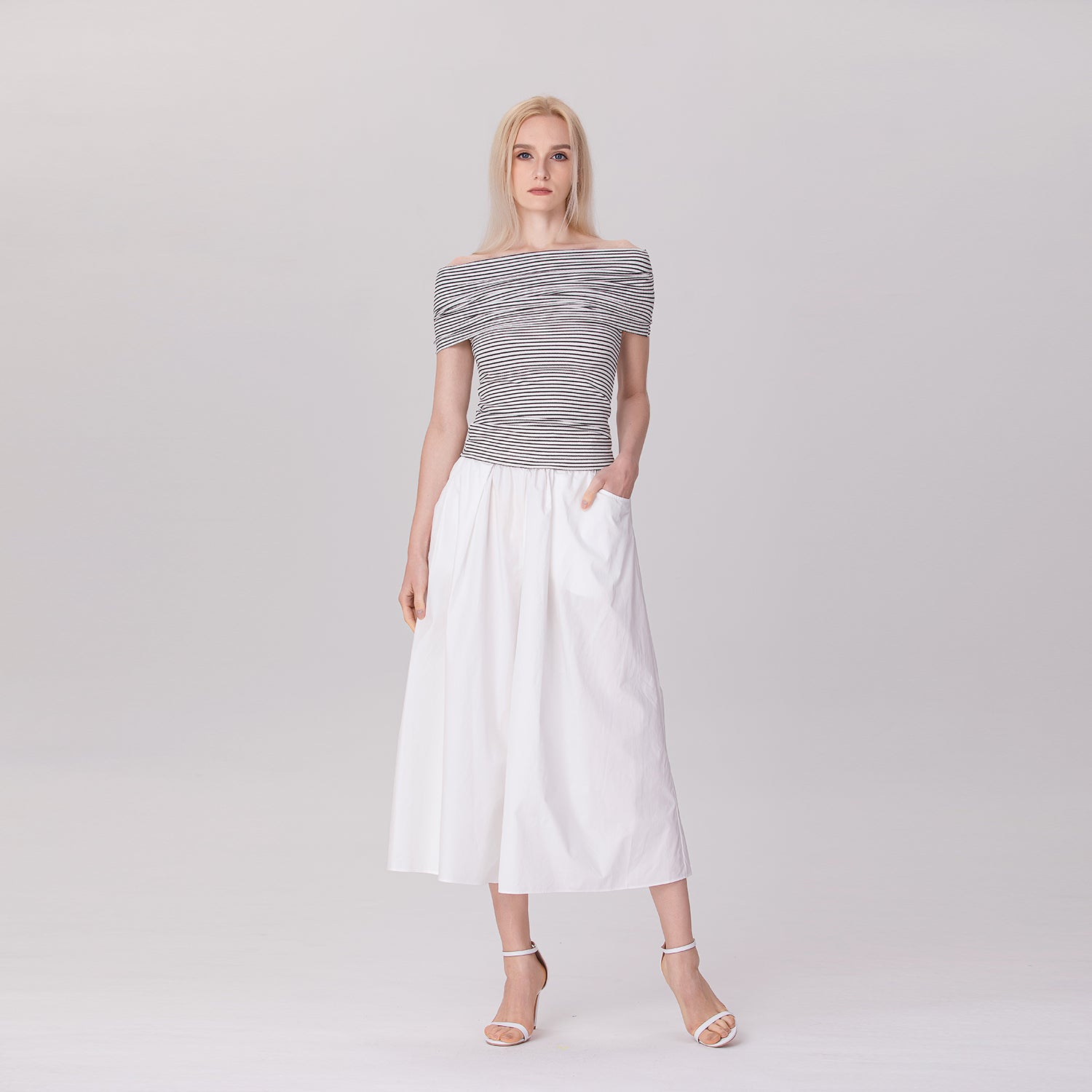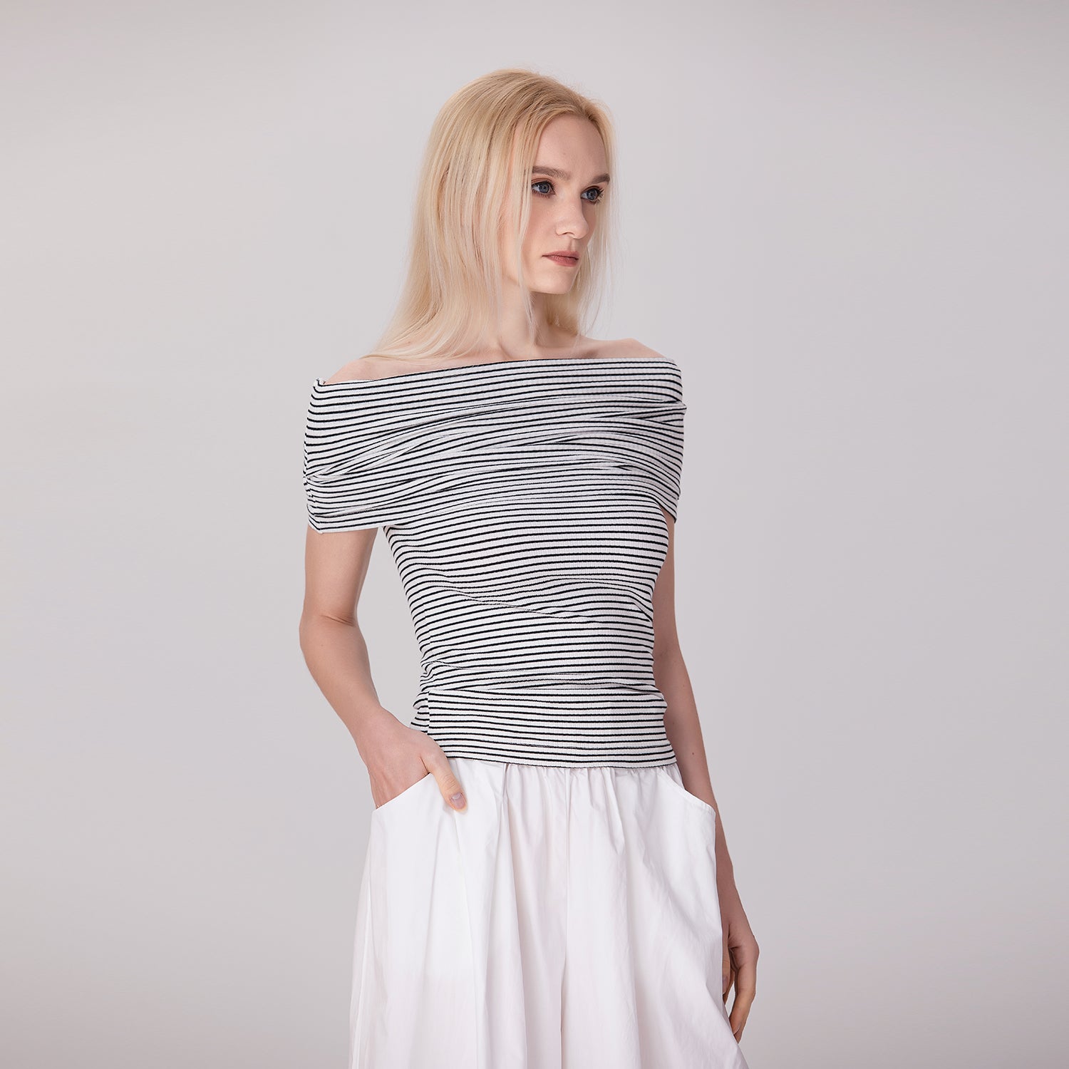 Top épaules dénudées à rayures