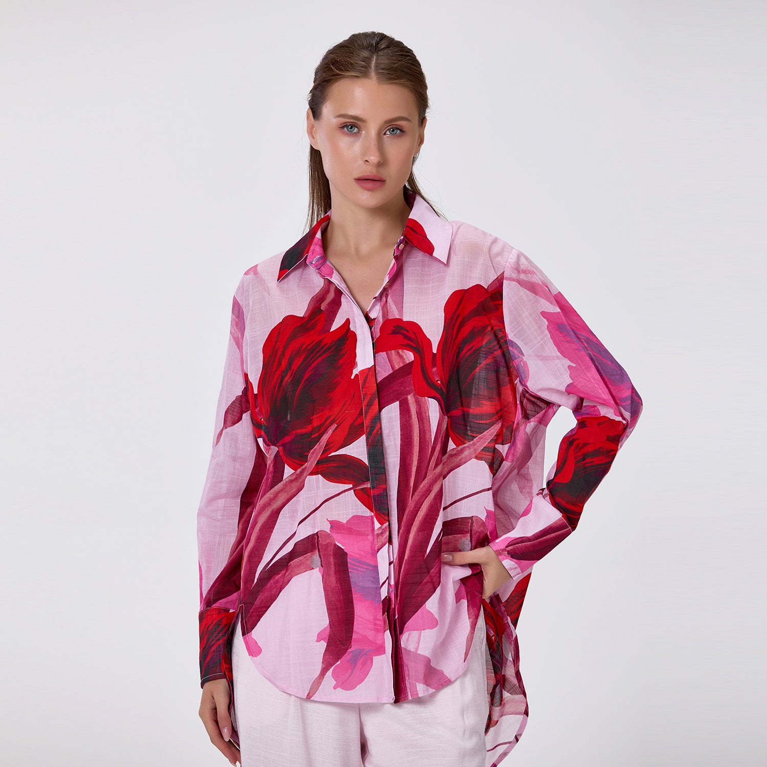 Chemisier manches longues et imprimé fleurs