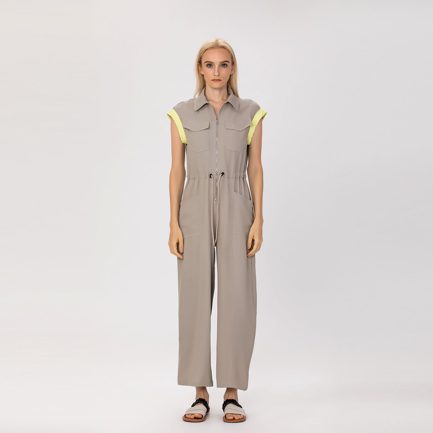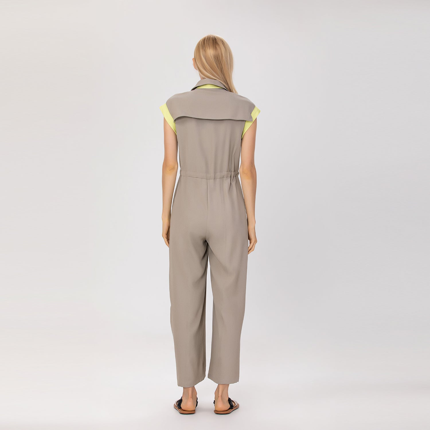 Combinaison sans manches à col chemise et ceinture