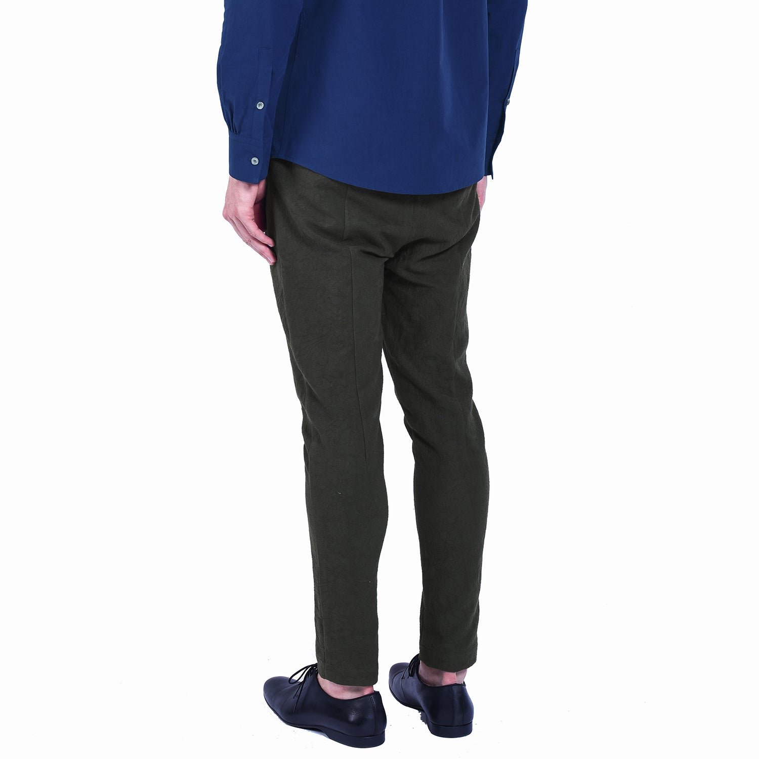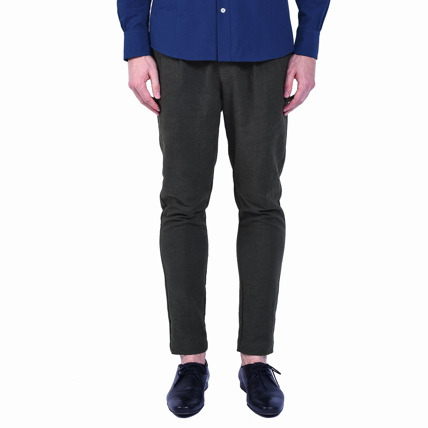 Élégant et confortable, ce pantalon pour homme est confectionné dans un jacquard de coton finement travaillé, révélant un motif floral subtil qui apporte une touche de sophistication discrète. Sa coupe slim fuselée allonge la silhouette tout en offrant une grande aisance au quotidien grâce à une matière souple et agréable.