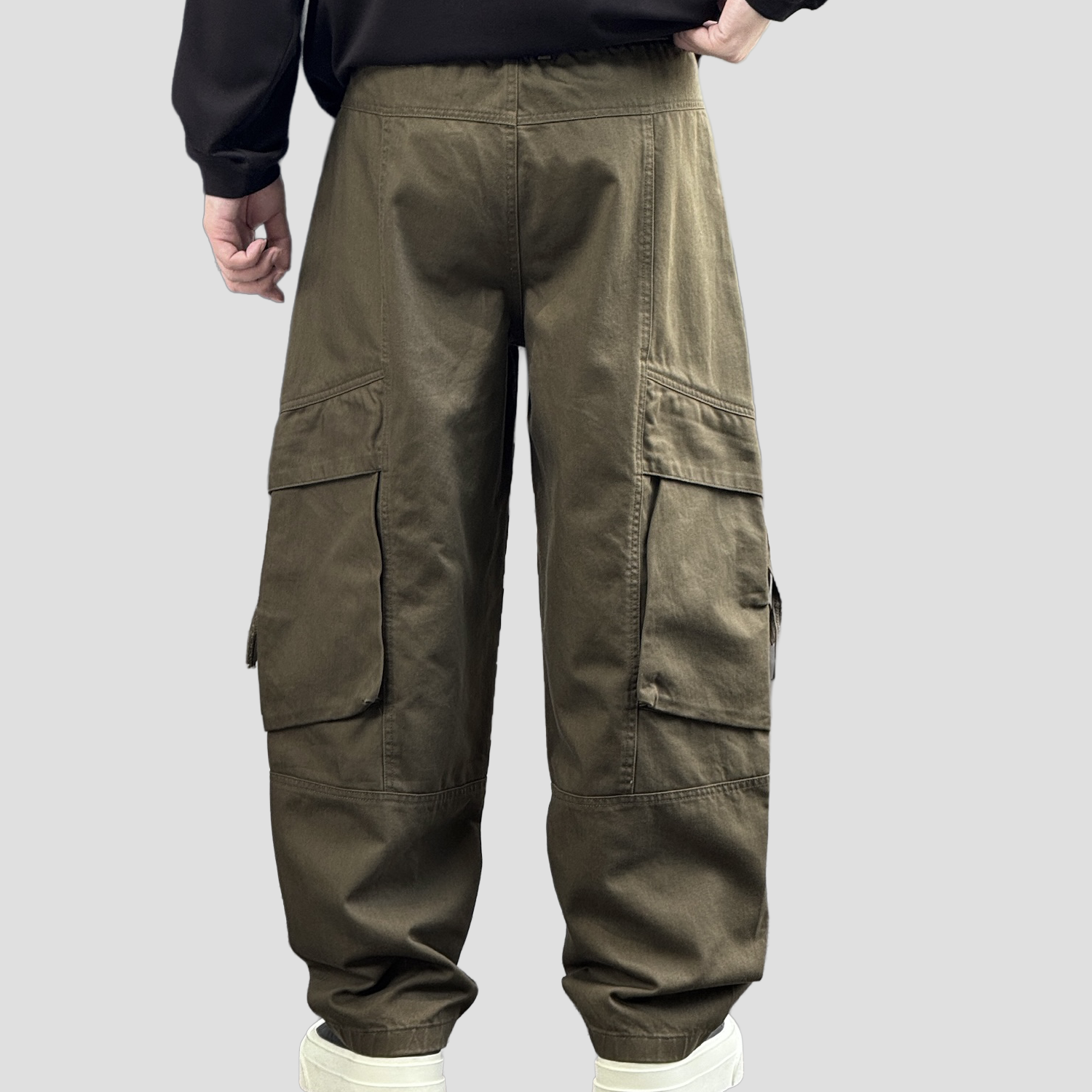 Ses poches latérales fonctionnelles, emblématiques du pantalon cargo, ajoutent un véritable avantage pratique tout en renforçant son caractère utilitaire. Les empiècements structurés, les surpiqûres apparentes et la taille élastiquée ajustable mettent en valeur une fabrication soignée et un sens du détail précis, gages d’un produit de qualité.