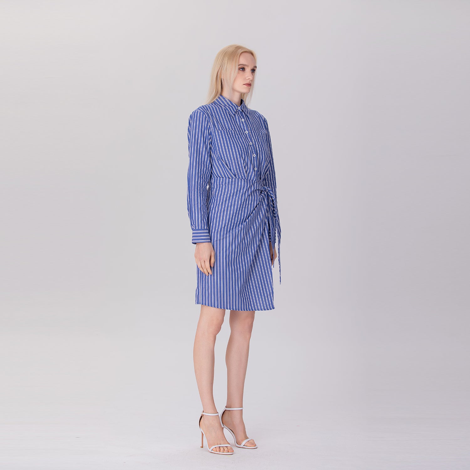 Confectionnée en coton pur, cette robe chemise associe allure décontractée et élégance raffinée. Dotée d’un boutonnage sur le devant, d’un col montant et d’un lien à nouer à la taille, elle met en valeur la silhouette avec une touche moderne. Confortable et respirante, elle se porte aussi bien au quotidien que pour une sortie citadine chic.
