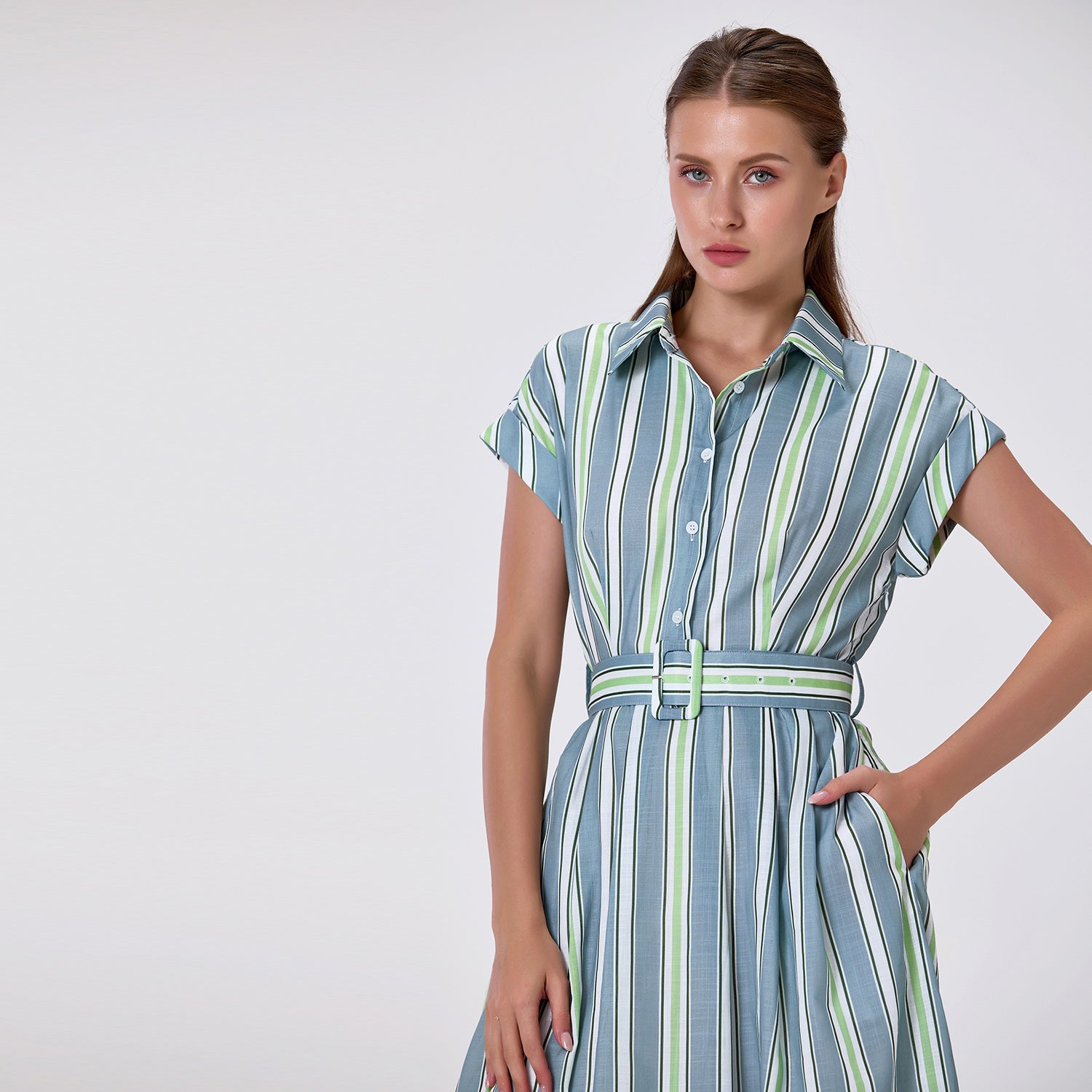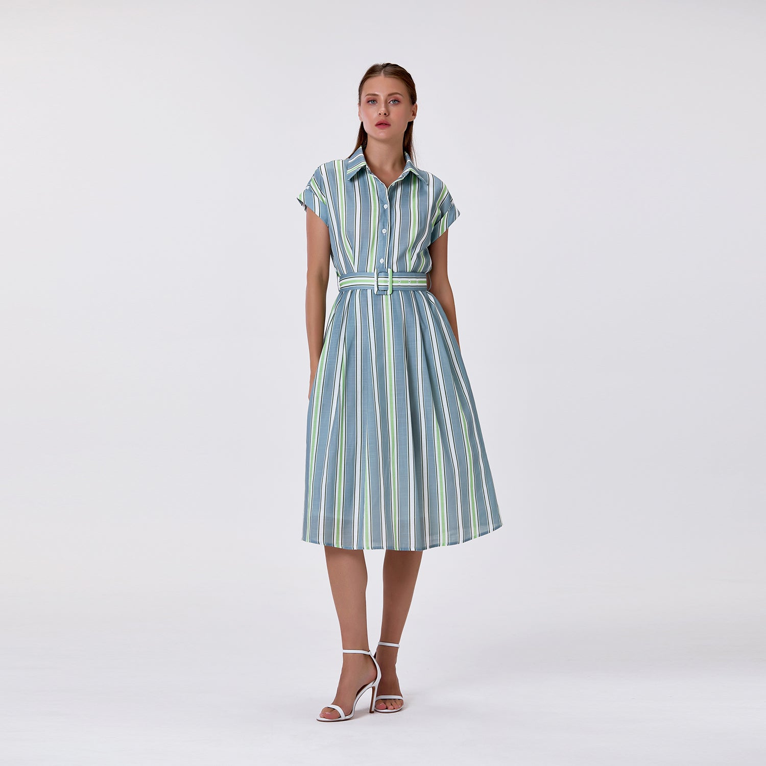 Robe chemise rayée avec ceinture