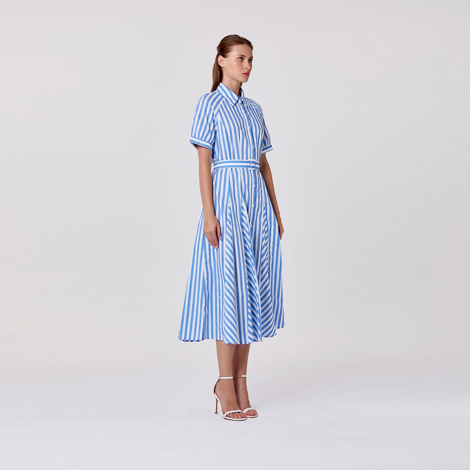 Fraîche et élégante, cette robe chemise rayée en coton est un indispensable intemporel de l’été. Dotée de manches courtes, d’un boutonnage sur le devant et d’une ceinture assortie, elle souligne la taille tout en offrant une silhouette chic et décontractée. Confectionnée en coton pur, elle garantit confort et respirabilité, idéale pour les journées ensoleillées ou les sorties élégantes et décontractées.