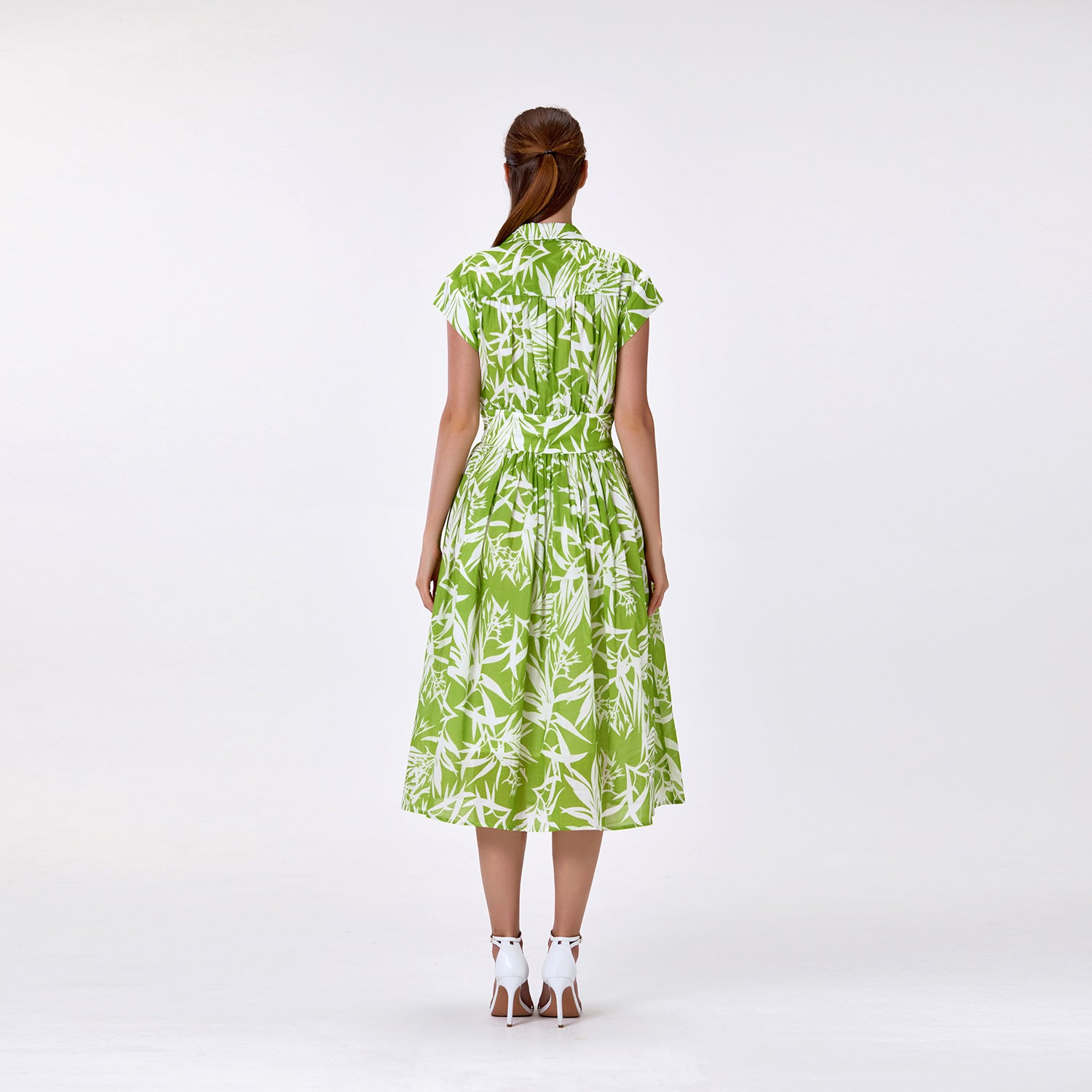 Cette robe midi imprimée en coton associe confort naturel et charme intemporel. Confectionnée en 100% coton et entièrement doublée en coton, elle est douce, respirante et idéale pour le quotidien comme pour les occasions décontractées. Sa coupe fluide accompagne le mouvement avec élégance, tandis que son imprimé raffiné apporte une touche de fraîcheur. Polyvalente, elle se porte aussi bien avec des sandales pour un look estival décontracté qu’avec des talons pour une allure plus habillée.