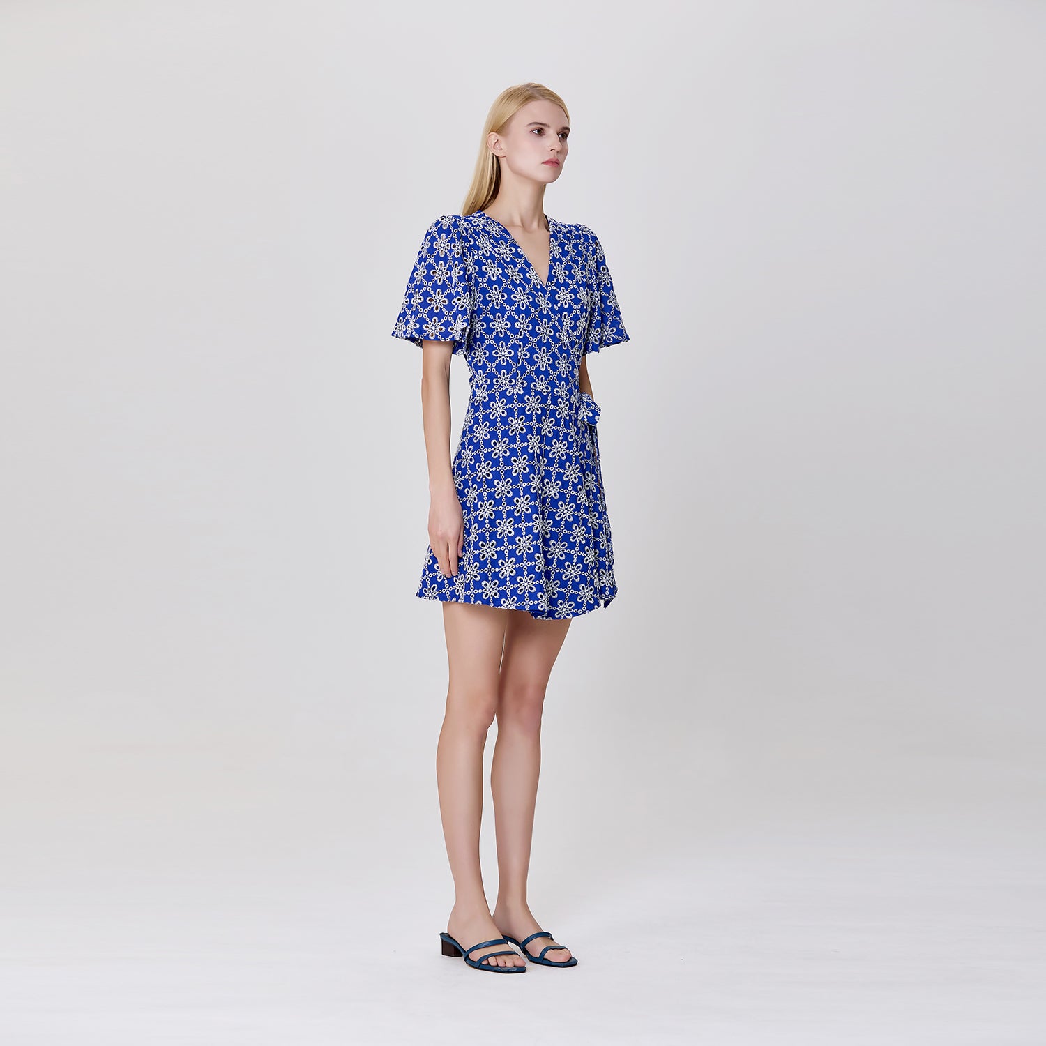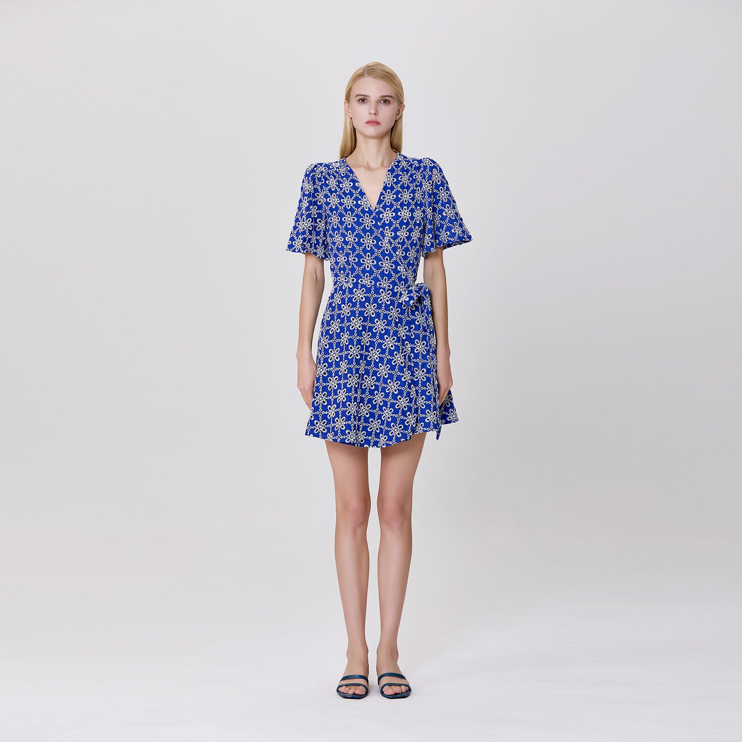 Robe portefeuille en dentelle florale à nouer