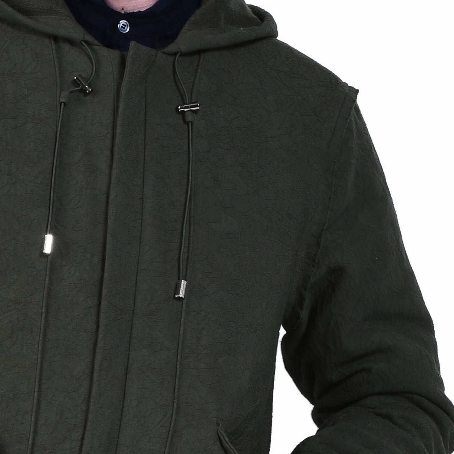 Cette veste à capuche en jacquard de coton offre un équilibre parfait entre modernité, confort et sophistication. Sa matière texturée au motif discret apporte une profondeur élégante au design, tandis que la doublure douce et la capuche enveloppante assurent une protection agréable par temps frais.
